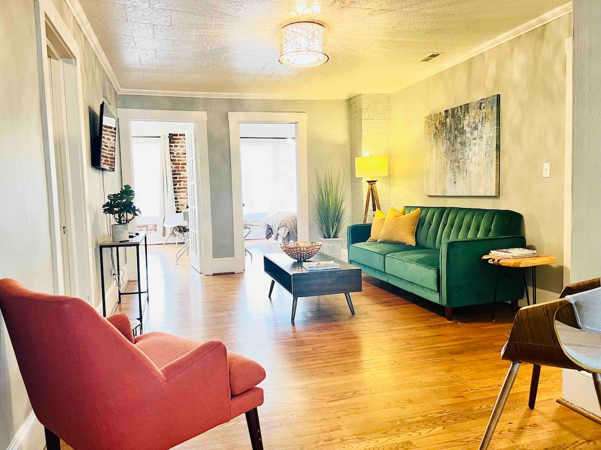 Sky Loft is a completely updated mid-century modern apartment in downtown West Jefferson. Walk to shops, great eats. Enjoy galleries & 2 movie theatres. Take in a mountain day hike or a biking/kayaking excursion during your visit. The loft is equipped with a full kitchen & 3 bedrooms. Enjoy free Wifi with a flat screen TV for you to log into your Netflix, YouTube, Vudu & Pandora accounts. The Nest thermostat allows you to set your desired comfort level. Lower rates Sunday - Thursday.