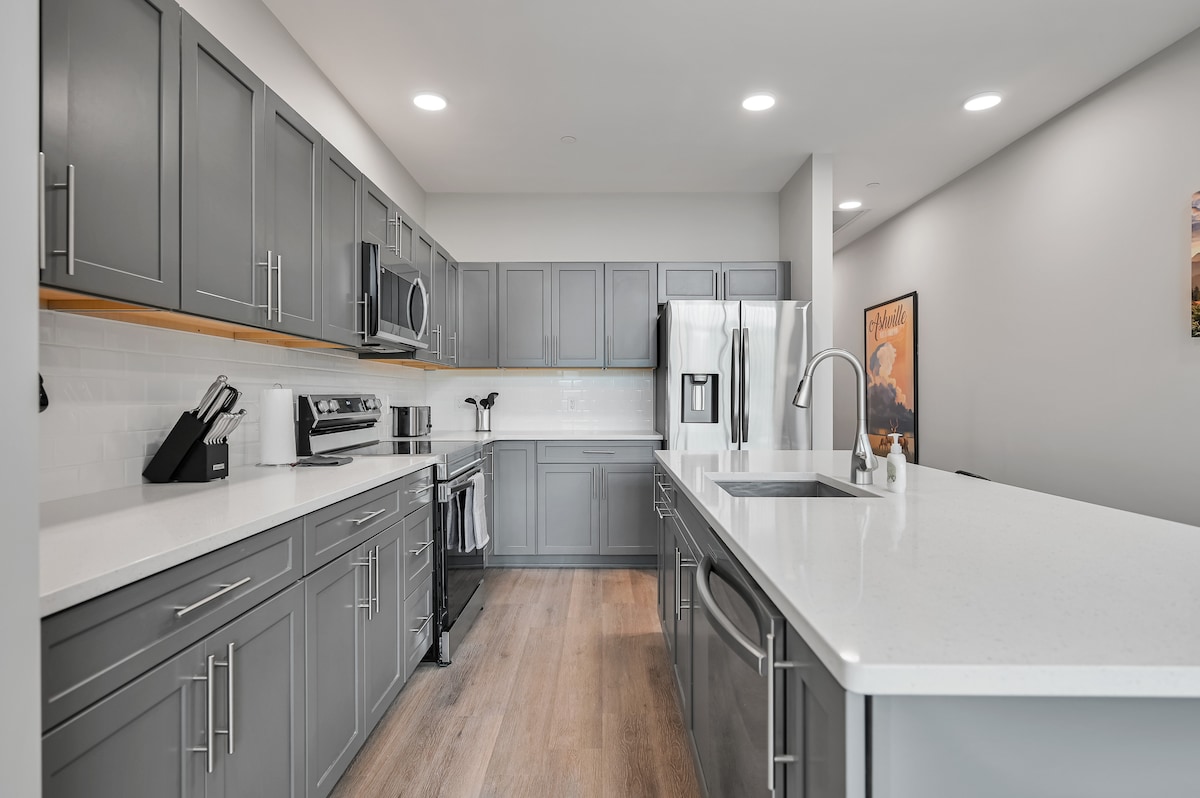 Lehne dich zurück und entspanne dich in diesem ruhigen, stilvollen Raum. Dieses neu erbaute, skandinavisch inspirierte Haus gibt dir das Gefühl, dass du von allem weg bist, während du nur 12 Minuten von der Innenstadt von Asheville entfernt bist. Entspannen Sie sich im Whirlpool auf der Terrasse, umgeben vom Lorbeerbaldachin, kuscheln Sie sich an den Kamin und schauen Sie sich einen Film an, oder baden Sie einfach im Wald durch die raumhohen Fenster, während Sie Ihren Kaffee im Bett trinken.