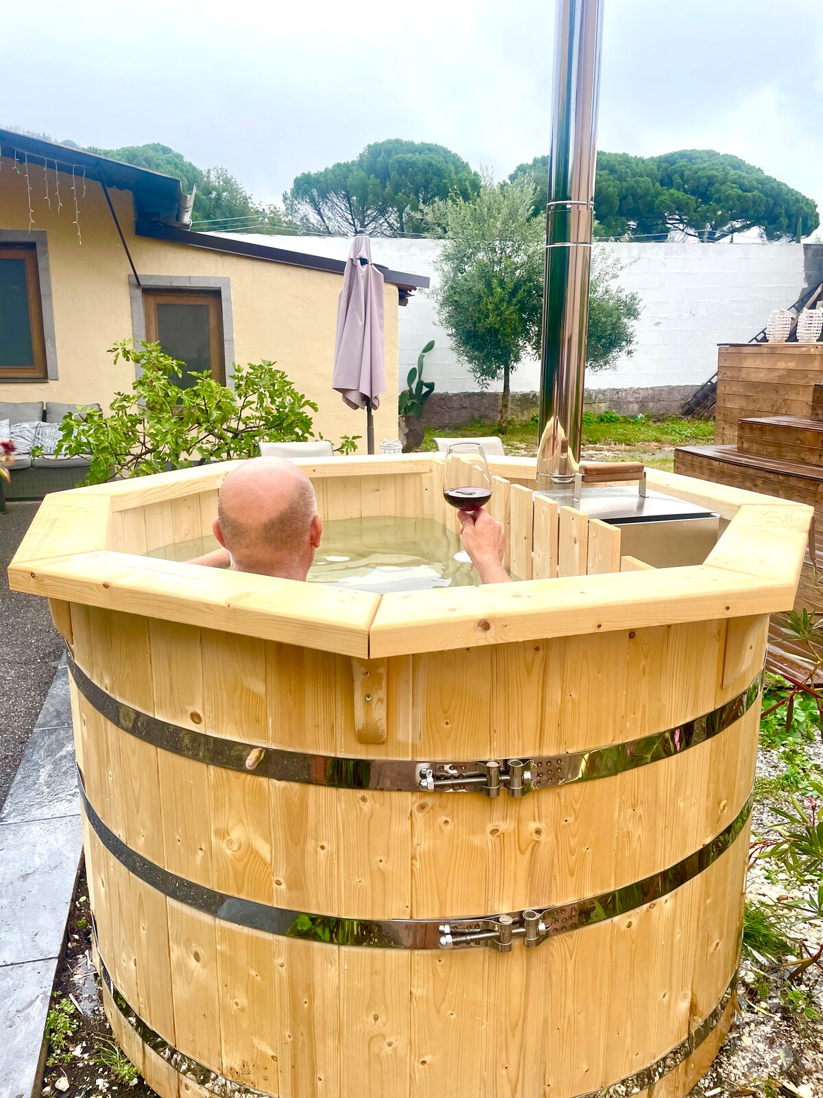 Detached design house on Etna inside a historic residence with an enchanting garden with centuries-old olive and pine trees and an infinity pool overlooking the sea. Bedroom with bathtub and wardrobe, wood-burning fireplace with tempered glass, mosaic shower for two people. Equipped steel kitchen. Welcome with water, wine or prosecco. The Lavazza coffee machine includes pods. Pizzeria 50 meters away. Well connected to the main services. Great for couples and families