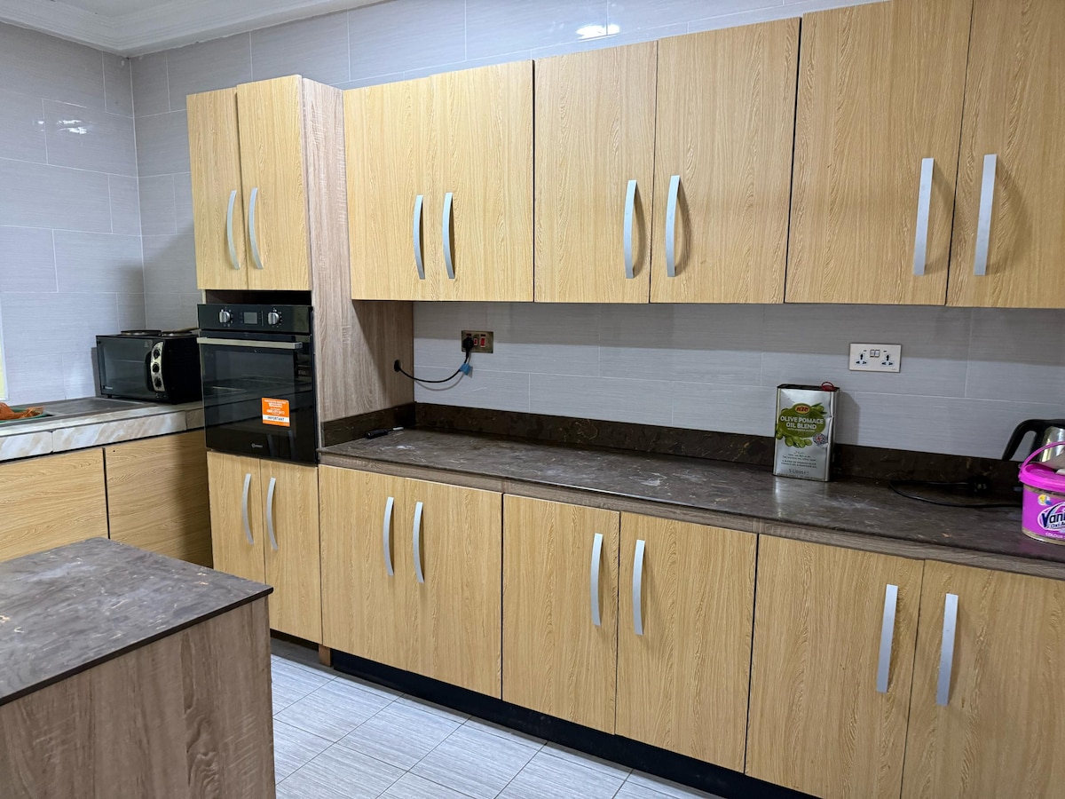Santa Monica Home Lodge hat eine ruhige und gemütliche Umgebung, mit herrlichen afrikanischen traditionellen Deko, die afrikanischen und internationalen Luxus-Standards erfüllt. Unsere Wohnung bietet Platz für 5 Personen. Sicherheit und Komfort der Gäste haben für uns Priorität. Wir interagieren mit unseren Gästen, um ihre beste Zufriedenheit zu erfahren. Unsere Selbstversorgerküche ist komplett ausgestattet und möbliert, mit einem Koch auf Abruf.