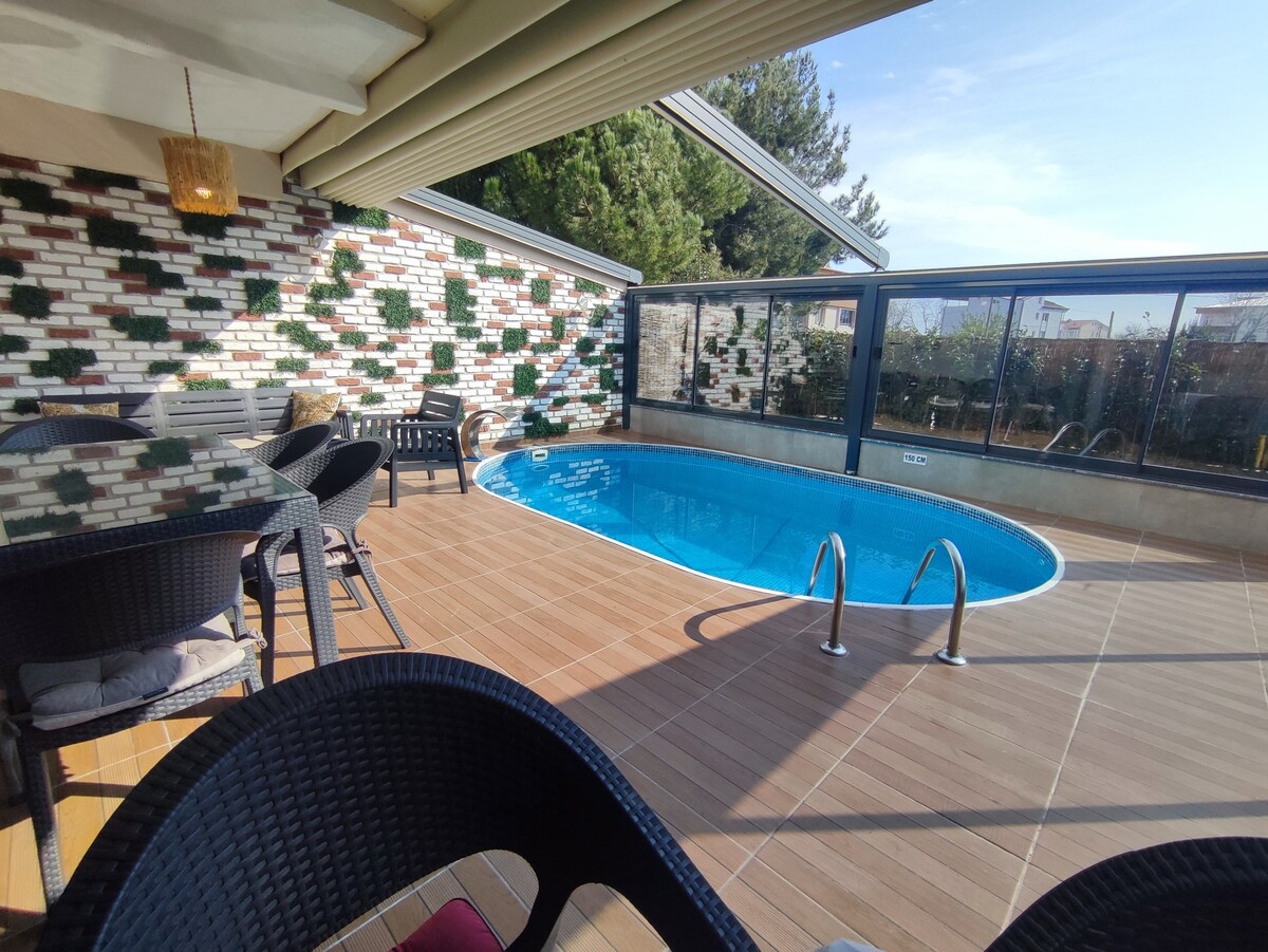 Wir bieten ein Erlebnis für einen ruhigen Urlaub in der schönen Natur von Samsun. In dieser privaten Villa mit Whirlpool und beheiztem Pool kommst du dem Stress der Stadt und fühlst dich friedlich. Wir priorisieren deinen Komfort mit modernem Design und aufwendigen Details. Reserviere jetzt und genieße diesen einzigartigen Urlaub!