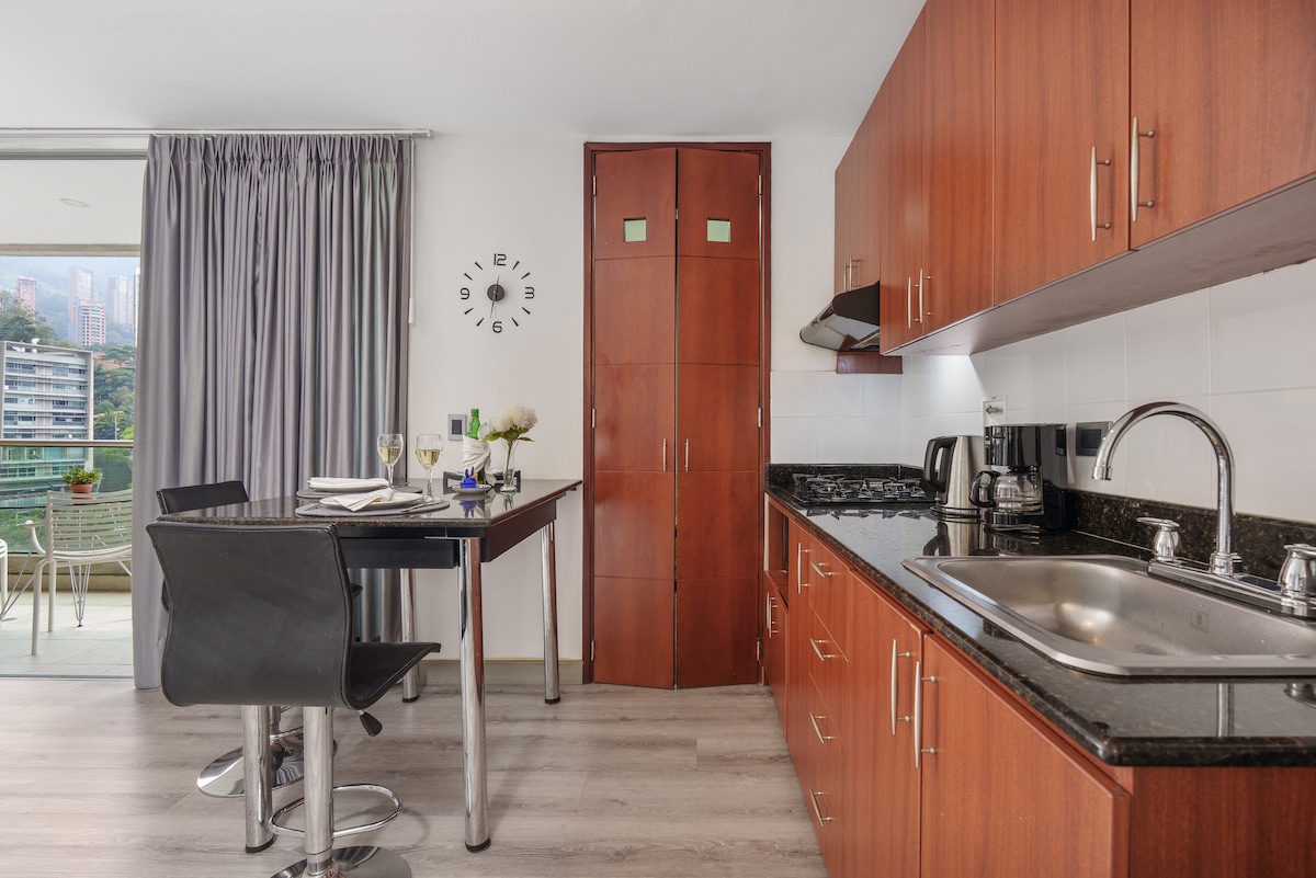 Relax in this elegant, modern apartment in the heart of Manila – El Poblado, just minutes from Provenza, Parque Lleras, and top medical centers such as Clínica Medellín, Clínica Las Vegas, and Clínica El Rosario. ✔Enjoy a king-size bed with premium linens, ✔Stylish bathroom with walk-in shower, ✔Smart TV, ✔High-speed fiber Wi-Fi ✔Fully equipped kitchen. ✔ Private balcony ✔Air Conditioning ✔ Hot Water ✨Perfect for short stays, business trips, or recovery stays.