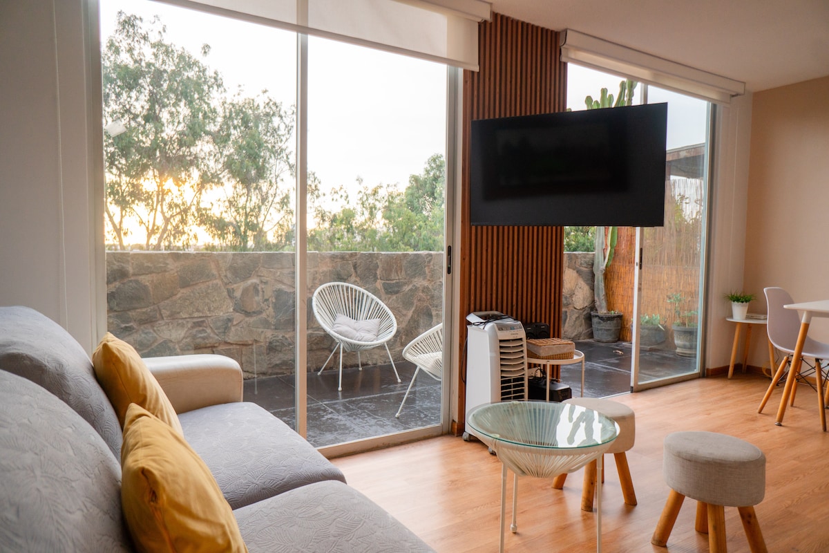 Tranquilo y elegante, sorpréndela con un espacio cuidadosamente pensado en ella, con un diseño cálido que le encantará. súper céntrico a unas cdrs de Plaza Vea, Wong, Promart, Ov. Santa Anita, La Universidad UPN, 3min aMall Santa Anita y 5min Real Plaza Puruchuco 15min del Jockey Plaza y al Estadio Universitario de Deportes, a unas cdras de la línea 2 del metro. El alojamiento puede sentirse cálido en verano. Por ello, ponemos a tu disposición un ventilador y mantenemos una ventana funcional