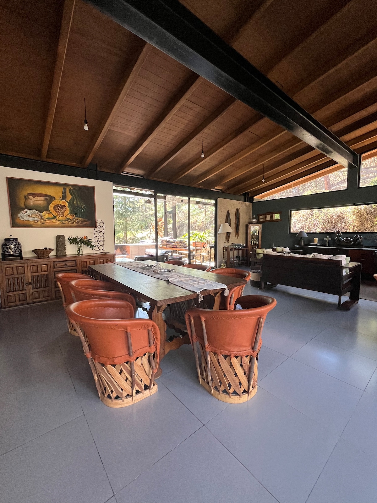Parte de la colección NOMADABNB, Toscana I es un refugio en el bosque construido en piedra y madera, con una atmósfera cálida y rústica que resalta su carácter natural. La terraza abierta hacia el paisaje y la chimenea de leña como corazón del espacio crean una experiencia ideal para desconectar y disfrutar el silencio del bosque, a solo 20 minutos de Tapalpa. • Chimenea de leña • Terraza con vista al bosque • Piedra natural • Estacionamiento privado y Wi-Fi • Mascotas bienvenidas
