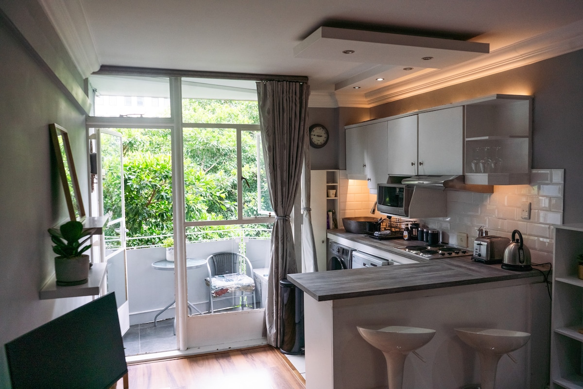 Modernes Studio-Zimmer (28 m²) VERBESSERTES INTERNET 220 MBPS LAPTOP / 120 MOBILTELEFON Blick aufs Meer, im Herzen von Sea Point Sicherste/gehobenste Gegend in Kapstadt In der Nähe von Restaurants, Mojo-Markt und Annehmlichkeiten, nur wenige Gehminuten von Cafés, Lebensmittelgeschäften, Fitnessstudios, Yoga und vielem mehr entfernt. *Privater Eingang Fahre zu beliebten Orten: Hauptstraße: 5 Gehminuten Clifton - 5 Autominuten entfernt Camps Bay 8 Minuten Fahrt CBD – 10 Autominuten entfernt 5 Gehminuten zur MyCiti-Bushaltestelle. -Air Con -WLAN (Glasfaser) -Kaffee/Tee