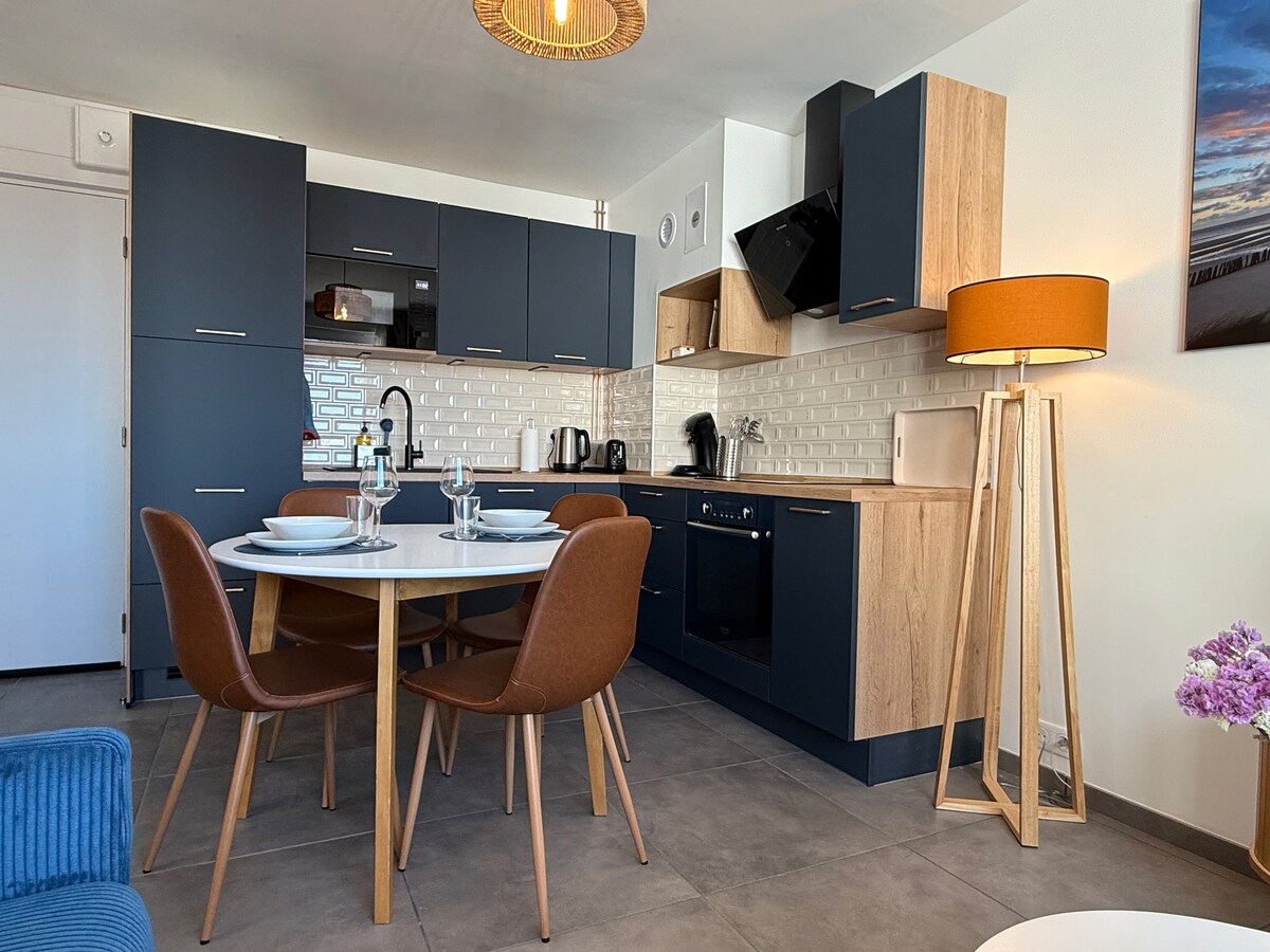 Bienvenue dans notre "Cocon Maritime entre les 2 Caps", un véritable havre de paix situé dans l'une des régions les plus préservées du Nord de la France. Notre logement de 80m2, décoré avec soin dans une ambiance marine, vous offre une escapade parfaite entre 2 magnifiques caps et à 2 pas des plages immaculées. Nous avons soigneusement sélectionné chaque élément de mobilier, en privilégiant confort et bien-être. Ainsi, vous pourrez vous ressourcer et profiter pleinement de vos vacances.