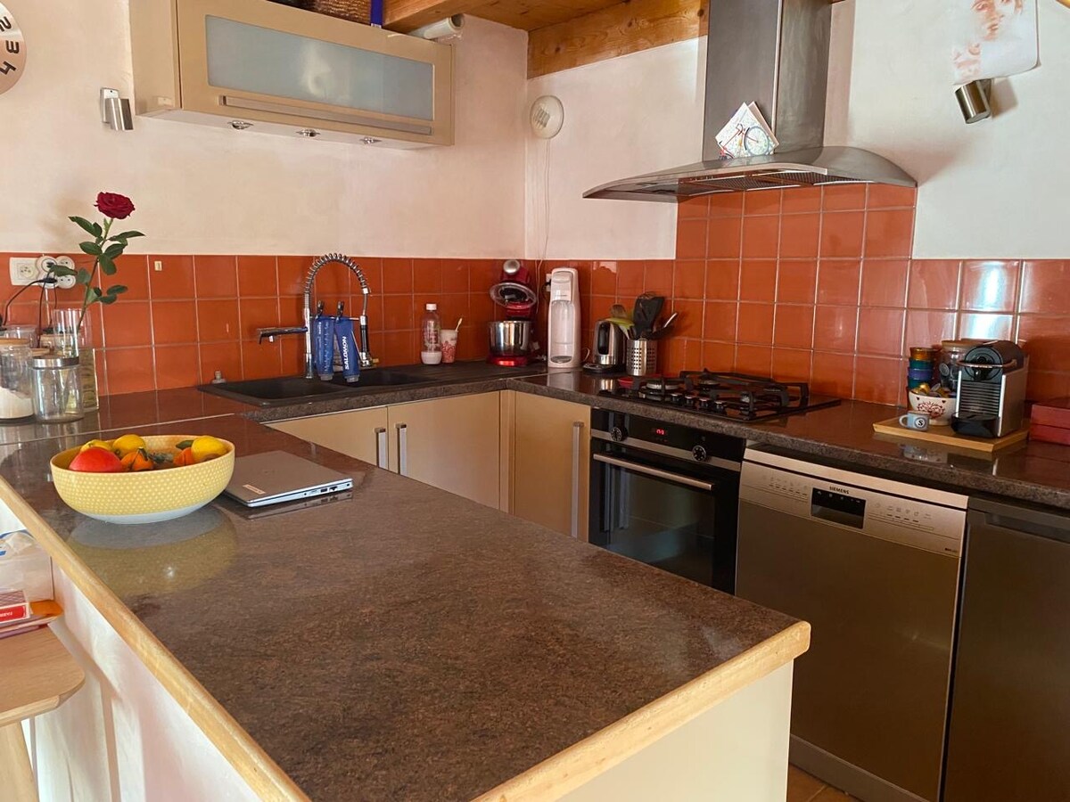 komfortable Wohnung mit privatem Pool, im Erdgeschoss der Villa, private Terrasse, Einbauküche, Bad, Parkplatz elektrogrill in der Nähe aller Annehmlichkeiten (Carrefour Market, Verkauf von lokalen Produkten im Bauernhaus) ansicht ohne gegenüber möglichkeit von 1/ Gästetisch (hausgemachte Küche) Mittag- & Abend (Vorspeise, Hauptgericht, Dessert & Getränke) ab 20 Uhr 2/Frühstück ab 8 Uhr(kontinentaler Typ) 3/Vollpension