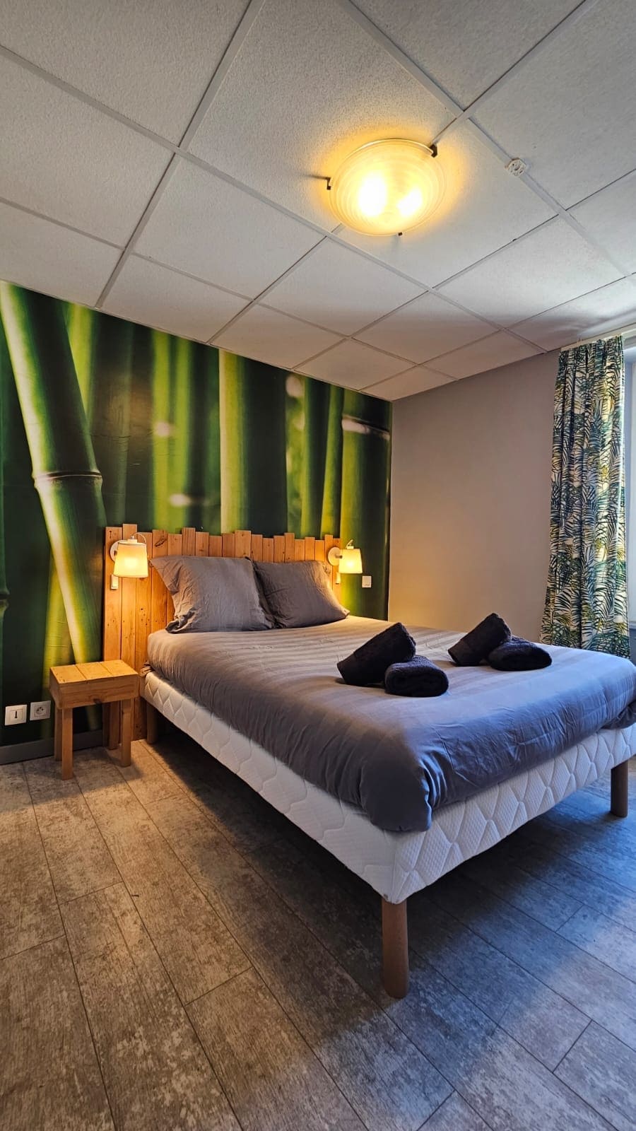 43 m² Wohnung mit einer Kapazität von 3 Personen, einschließlich: - Ein Schlafzimmer mit einem 180 x 200 cm großen Doppelbett oder zwei 90 x 200 cm großen Einzelbetten - Ein Wohnzimmer mit einem Küchenbereich und einem Ausziehsofa für eine Person. - einem Badezimmer mit einer Badewanne und einer separaten Toilette - Ein Parkplatz auf dem bewachten Parkplatz des Hotels