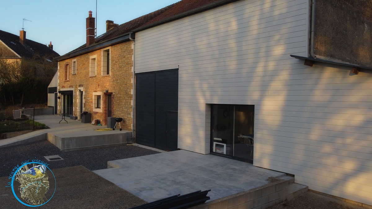 Ferienhaus von 100 m², komplett neu, in einer Scheune. Elektroheizung mit Holzofen. Voll ausgestattete Küche (Geschirrspüler, Kühlschrank, Gefrierschrank, Backofen + Mikrowelle, etc.). Ideal zum Ausruhen und Genießen der Ruhe der Natur. Auf dem Land gelegen, ohne Sichtkontakt nach außen. Immobilie mit der Eigentümerin zu teilen. Private Terrasse, Grill, Schaukel, Rutsche. Kostenloses WLAN. Netflix Kurtaxe gegen Aufpreis: 1,21/Erwachsener/Tag