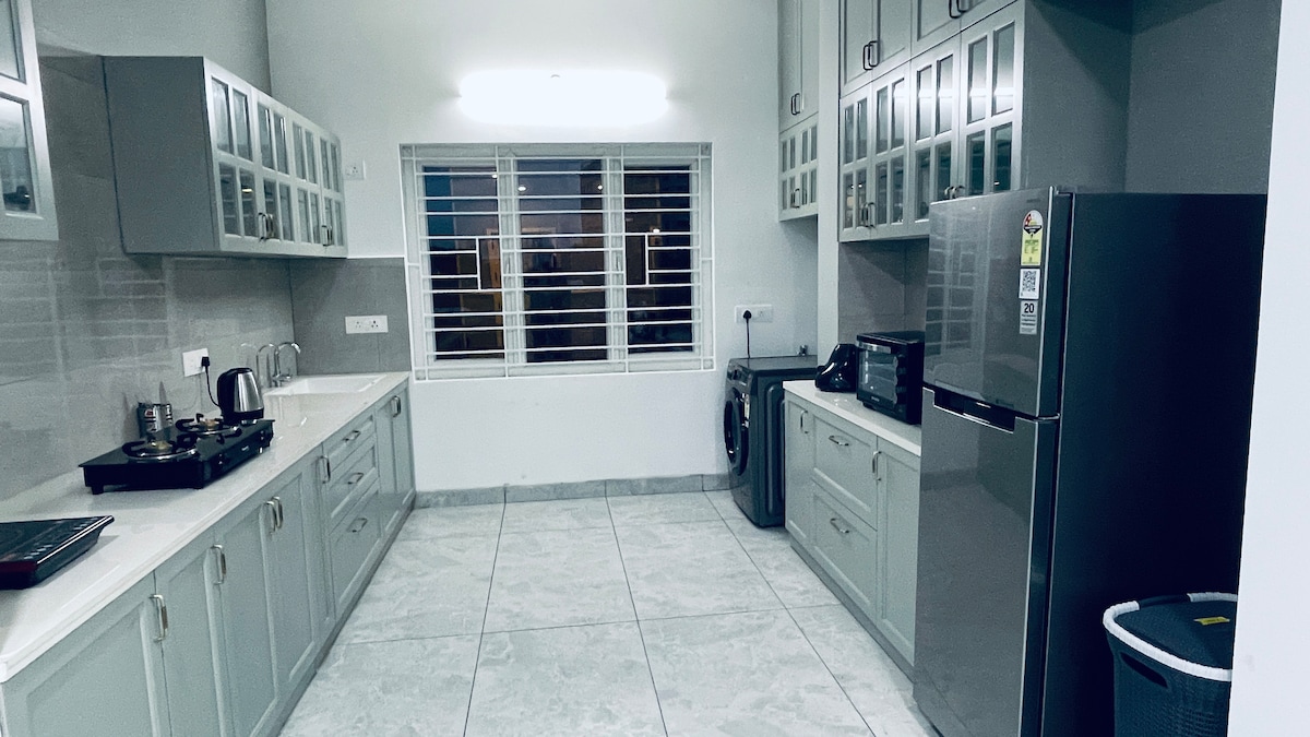 This first-floor 2-bedroom family suite at Shalom Deo offers a warm, comfortable stay with inviting spaces to relax. One bedroom is air-conditioned, while the second bedroom has a ceiling fan, making the home suitable for families and long stays who prefer natural ventilation. The home includes a functional kitchen, Wi-Fi, Smart TV, free parking, washing machine, and a small workspace. Set in a quiet part of Avadi, it offers easy access to shops, eateries, parks, and transport.
