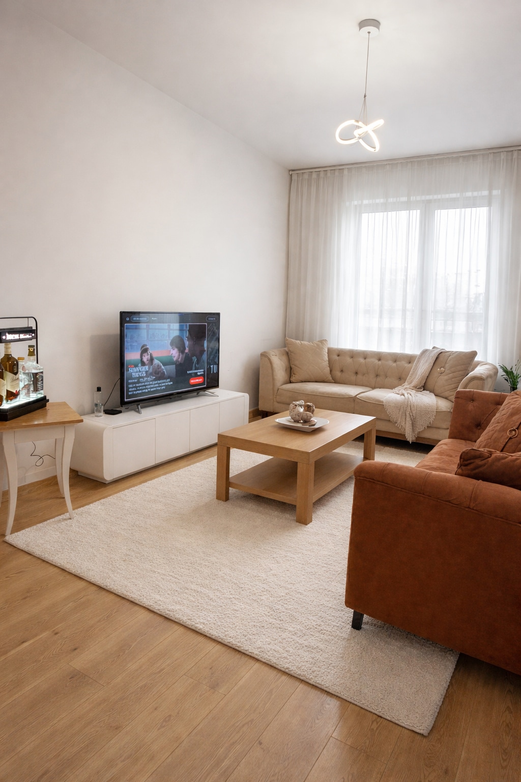 This apartment is furnished in hotel comfort and designed to a five-star hotel standard. It is thoroughly cleaned before every guest check-in and after each check-out. The living room features a TV with Netflix and YouTube access for your entertainment. The kitchen is fully equipped with all essentials needed for cooking and daily use. Every detail has been thoughtfully prepared to meet our guests’ needs and ensure a comfortable stay. The apartment can accommodate a maximum of 2 adults and 1Chld