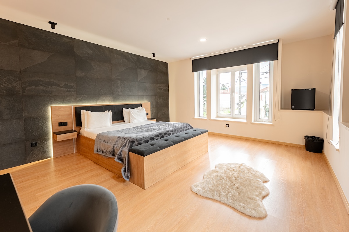 Take a break from the hustle and bustle of the city in a quiet private hotel surrounded by eucalyptus forests in central Portugal. Private room with en-suite bathroom, shared courtyard with swimming pool and jacuzzi, gazebo with furniture and sauna, lounge area with fireplace, TV and SonyPlaystation 5.