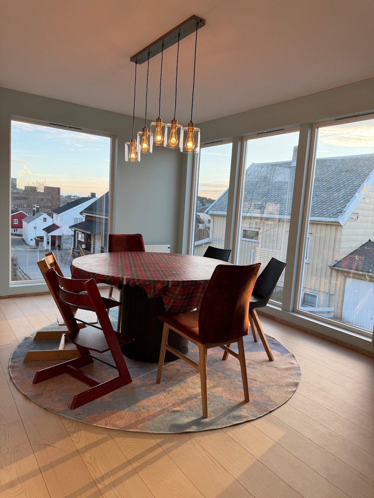 Start your next adventure in our picturesque 3-rooms rooftop apartment in the heart of the city. Here you’ll be greeted with incredible views over Kristiansund. It is fully equipped to be your home-away-from-home. The kitchen is fully equipped with appliances and all you need for coffee each morning! Enjoy your meals together around the dining room table, or relax in the comfy space includes a flatscreen TV. Private free 1 car parking is located behind the building. We hope to see YOU soon.