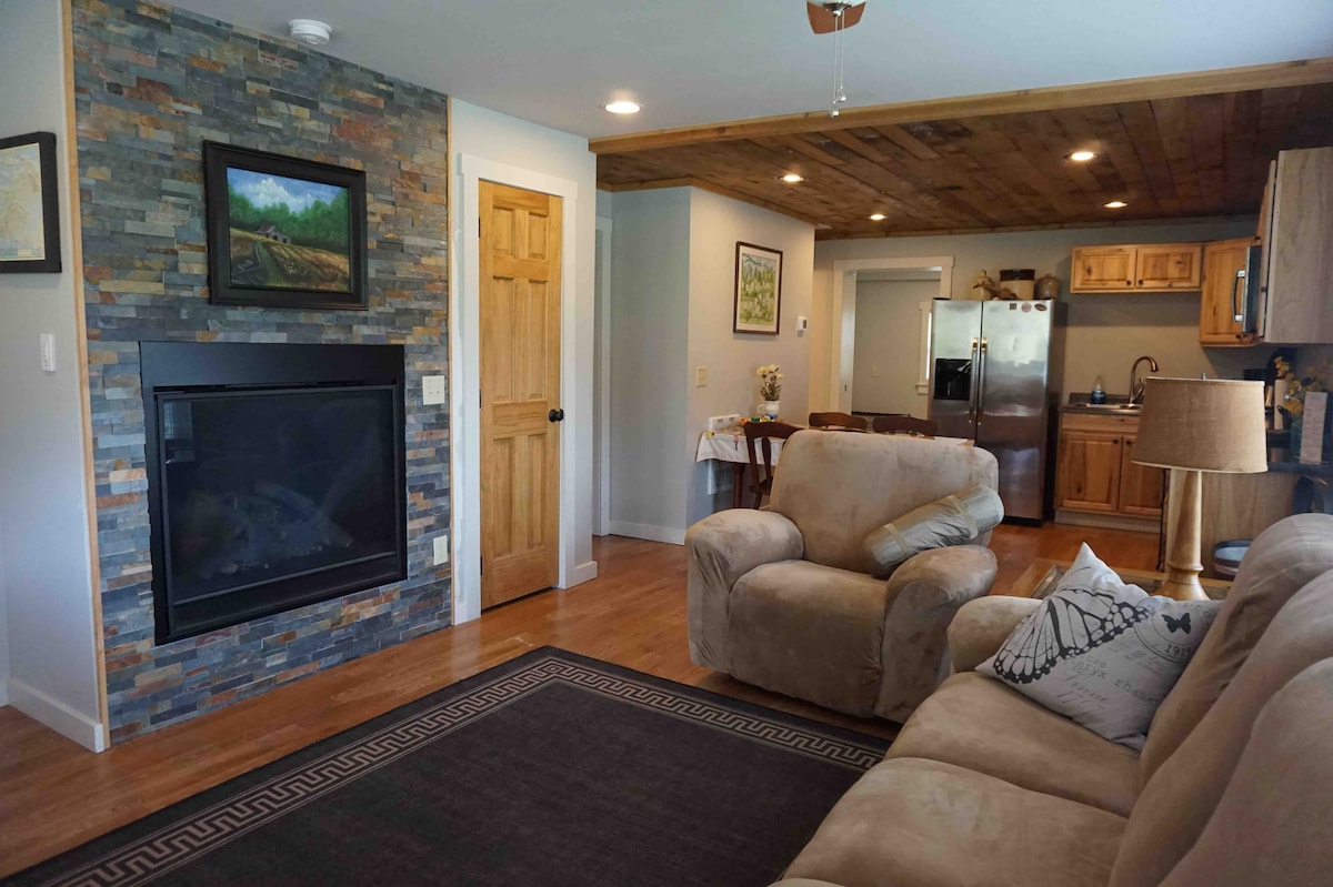 Die obere Etage unseres charmanten Scheunen-Retreats in der Nähe von Boone, Banner Elk und Blowing Rock! Machen Sie es sich im Winter am Steinkamin gemütlich, kochen Sie in der voll ausgestatteten Küche und entspannen Sie sich auf der Außenterrasse mit Waldblick. Kinder und Erwachsene werden es lieben, das Anwesen zu erkunden, das Zugang zum Watuga River bietet. Nur wenige Minuten von den lebhaften Geschäften von Boone, den Skipisten von Banner Elk und den malerischen Wanderwegen von Blowing Rock entfernt, ist es der perfekte Ausgangspunkt für ein unterhaltsames Familienabenteuer. Buchen Sie noch heute!