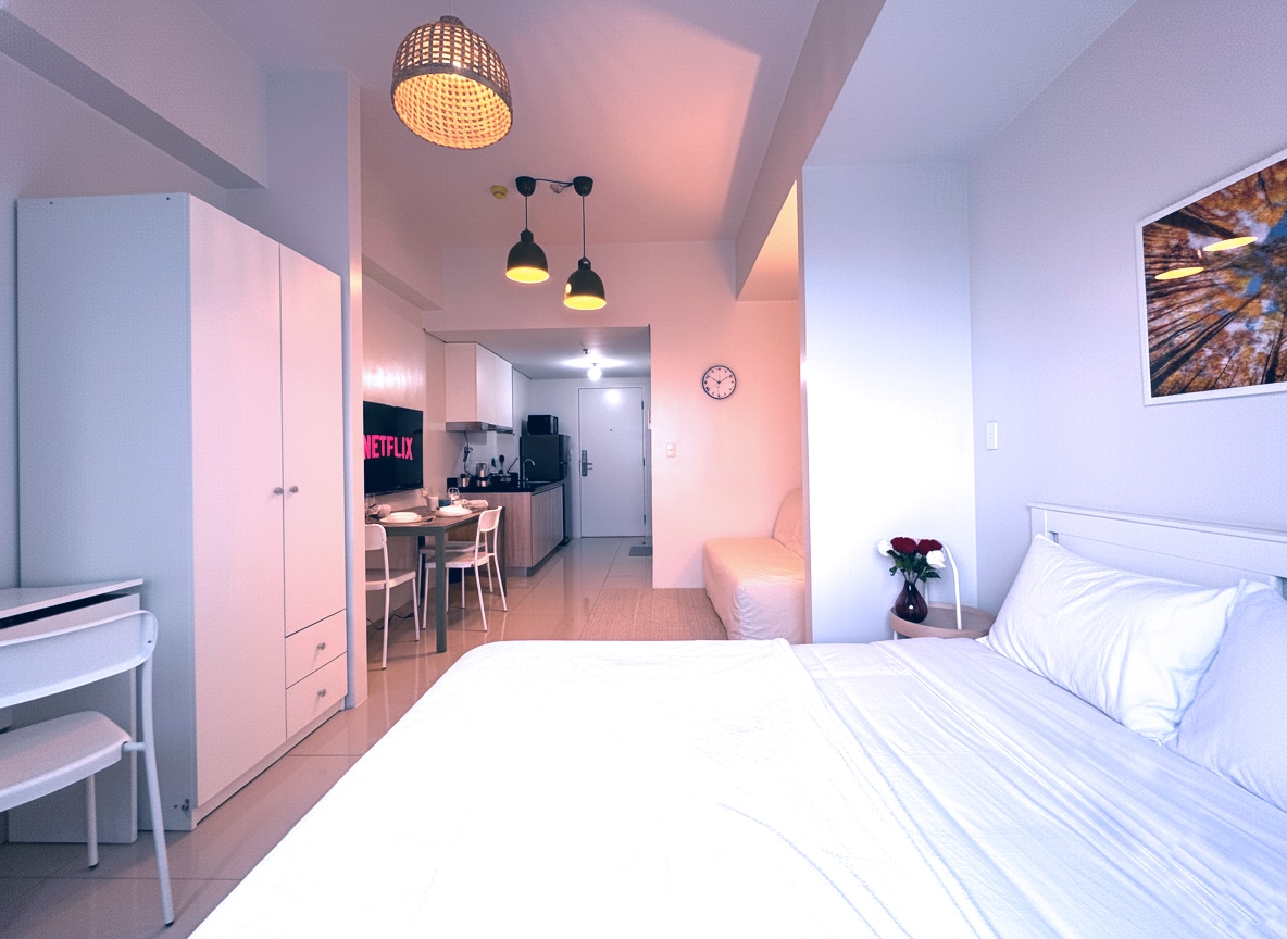 Hallo, willkommen in AirJapandiMakati, deinem schönen zweiten Zuhause! Genieße eine stilvolle, von Japandi inspirierte, voll möblierte 2-Zimmer-Wohnung im Herzen von Makati! Diese Unterkunft ist etwas mehr als ein Jahr alt und wurde neu professionell für einen perfekten Aufenthalt und Mini-Urlaub neu gestaltet. Sie bietet einen schönen Blick auf die Makati Skyline direkt von deinem Schlafzimmer aus. Diese Einheit verfügt über eine voll ausgestattete Küchenzeile, High-Speed-WLAN, einen 43-Zoll-Smart-TV mit Netflix, ein eigenes Badezimmer mit Warmwasserbereiter und Bidet.