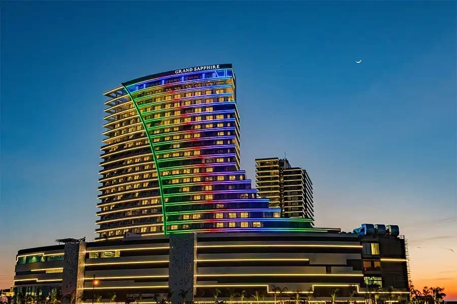 Unverbauter Meerblick vom 7. Stock, voll möbliert, klimatisiert, klimatisiert, in sich geschlossen, private 1+1 Wohnung in einem Ferienresort mit 13 Pools, Wasserrutschen, Spa, Kinderecke, Fahrradverleih, Autovermietung, vielen verschiedenen Restaurants, Supermarkt, Karaoke und nur wenige Gehminuten vom neu renovierten Long Beach-Gebiet entfernt. Famagusta ist nur 20 Fahrminuten entfernt und von dort aus ist es eine malerische Fahrt nach Karpaz entlang der Küste. Es wird nicht mehr lange dauern, bis du diesen Ort dein zweites Zuhause nennst!
