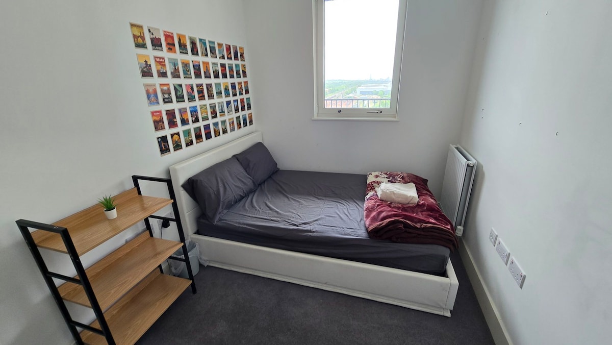 Schöne helle und geräumige Wohnung mit einem Kingsize-Bett im Vereinigten Königreich. Im Herzen des Stadtzentrums, in der Nähe von Geschäften und Restaurants. Flughafen Luton - 11 Minuten mit dem Zug; mit dem Auto 20/30 Minuten. Die Wohnung verfügt über einen großen Wohnbereich mit Küche und Esstisch, ein Badezimmer und ein Schlafzimmer mit einem Kingsize-Bett (UK) Kostenlose Parkplätze stehen auf einem zugewiesenen Platz auf einem privaten Parkplatz 2 Minuten von der Wohnung entfernt zur Verfügung. PARKEN IST STRENG NACH VEREINBARUNG Die Wohnung befindet sich gegenüber einer Kneipe (ab September 2025 geschlossen). Wir haben jedoch nur sehr wenige Berichte über Lärm.