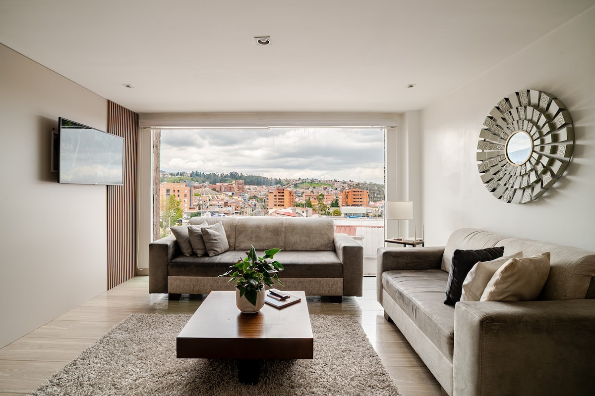 *Building with electric generator, there is no problem with power outages. Modern and elegant apartment in the best area of Cuenca. Steps from Supermaxi, the tram, and the Tomebamba River, and just 5 minutes from the iconic Cathedral and historic center. Surrounded by restaurants, pharmacies, and services. Enjoy the private jacuzzi and stunning terrace views. Comfort, style, and exclusivity combine for an unforgettable stay.