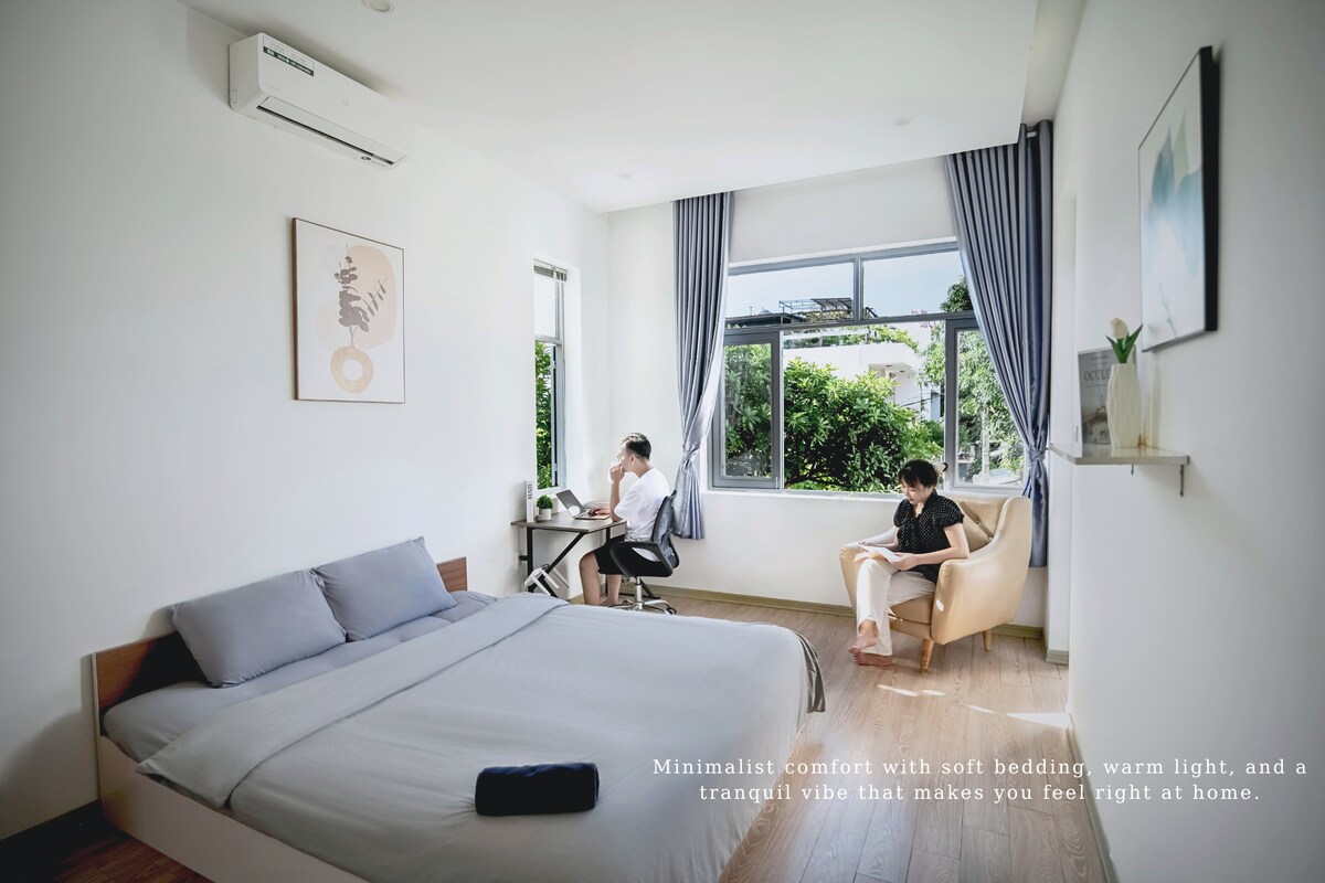Welcome to Sóng Homestay – Healing Garden Home 🌿- a cozy private house just close to My Khe Beach. Mornings begin with sunlight dancing through the trees, coffee brewing in your tropical garden, and quiet yoga breaths. Spend slow afternoons cooking together, reading by the window, or enjoying BBQ under fairy lights. Perfect for families, couples, and digital nomads seeking a peaceful, naturally designed home with fast 500 Mbps Wi-Fi Your home to Stay – Heal – Connect in the heart of Da Nang.