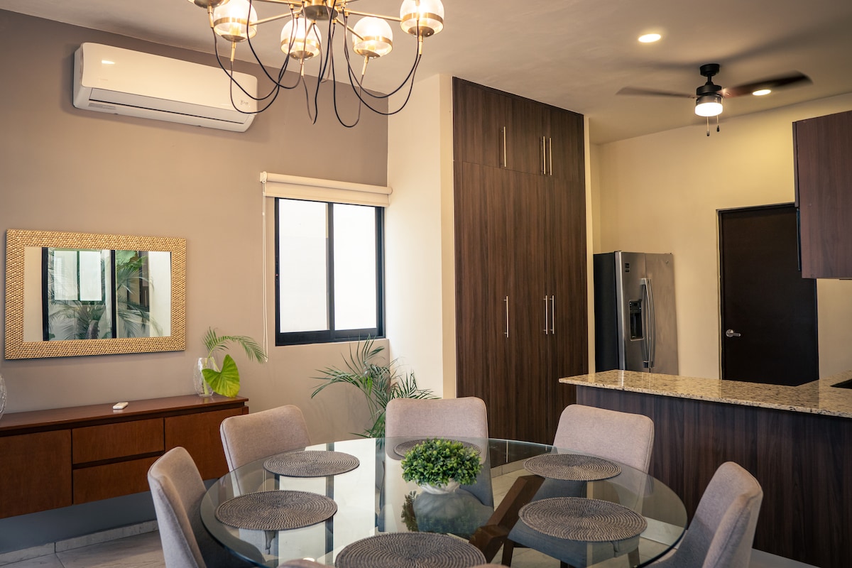 Willkommen im Esmeralda Studio – Eleganz und Komfort im Herzen von Mérida Das Estudio Esmeralda befindet sich in einer der charmantesten Gegenden des historischen Zentrums von Mérida und ist ein architektonisches Juwel, das zeitgenössisches Design mit der Wärme natürlicher Materialien verbindet. Sein einzigartiges Layout macht es zu einer idealen Wahl für Paare, die Komfort und Privatsphäre suchen.
