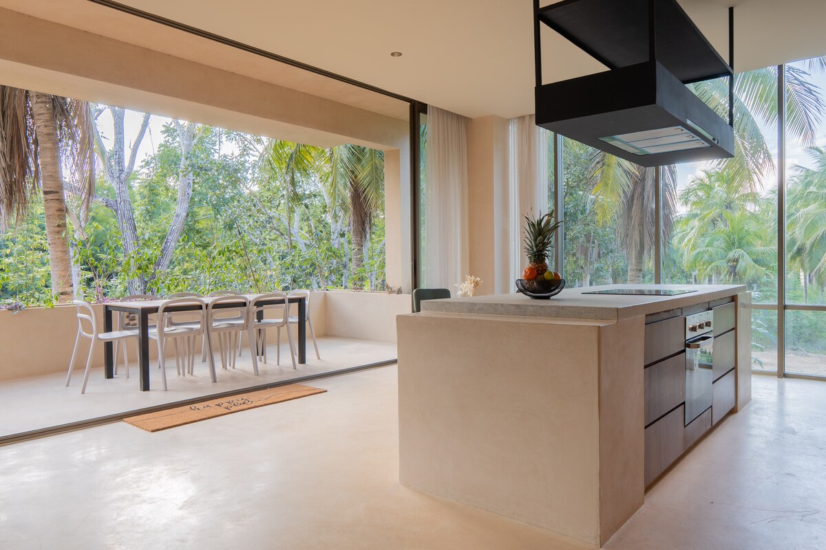 Located in an exclusive residential area in the heart of the jungle, this elegant lagoon-front residence invites you to disconnect from the world and reconnect with nature. Wake up surrounded by jungle, walk to the private dock on the lagoon, and enjoy a spectacular pool surrounded by tropical vegetation. The apartment combines contemporary design, spaciousness, and maximum comfort: king-size beds, terrace with private pool, kitchen with central island. Luxury lives in harmony with nature.