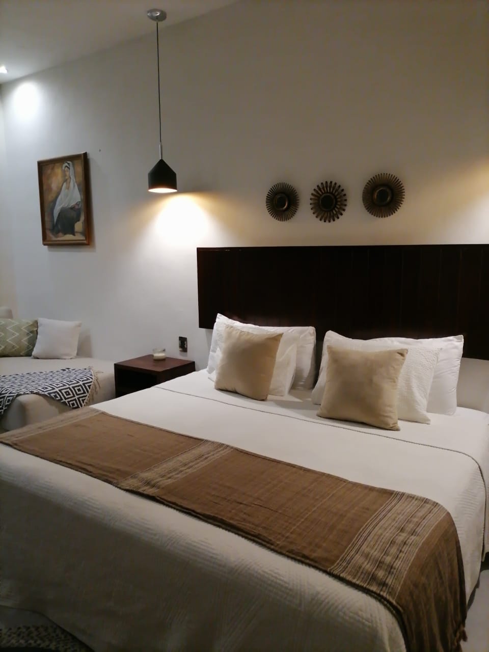 Villa Ek Nah ist ein unglaubliches Penthouse am Strand in Mahahual. Privilegierte Lage: Die Villa Ek Nah befindet sich direkt am Meer, was bedeutet, dass du mit spektakulärer Aussicht aufwachen und die Meeresbrise den ganzen Tag über genießen kannst. Zugang zu exklusiven Einrichtungen: Als Gast unseres Penthouses hast du nicht nur Zugang zu den Einrichtungen des Komplexes und direkten Zugang zum Meer, sondern auch Zugang zur privaten Dachterrasse mit Whirlpool, Palapa und Grill.