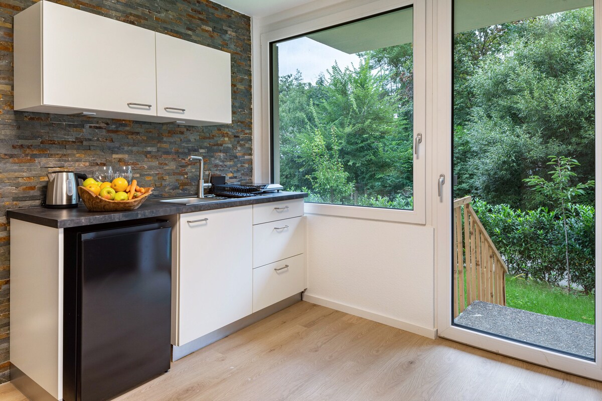 Das stilvolle Apartment befindet sich im Erdgeschoss eines exklusiven Neubaus. Die Wohnung verfügt über eine große Terrasse & einen kleinen Garten. Der private Parkplatz befindet sich direkt neben der Terrasse, Ihr Auto ist also immer in Sichtweite. Die Wohnung ist sehr hochwertig eingerichtet. Es gibt 2 Schlafzimmer mit Boxspringbetten, 1 WC, 1 Badezimmer mit Dusche, Badewanne & einem weiteren WC. Das Wohnzimmer verfügt über ein bequemes Schlafsofa & die neue, voll ausgestattete Küche.