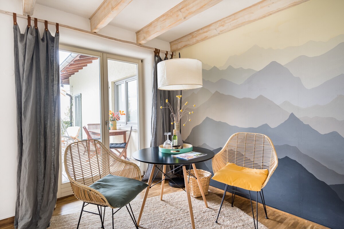 Charmante Ferienwohnung mit Zugang zu idyllischem Garten mit Bach. Ruhig gelegen aber ausreichend zentral im Markgräflerland am Fuße des Schwarzwaldes. 2min bis in die Natur, zur Bushaltestelle oder zu einer Einkaufsmöglichkeit; 5min bis Müllheim. Das Dreiländereck bietet vielfältige Unternehmungsmöglichkeiten zu Natur (Schwarzwald, Weinberge, Rheinebene, ...), Kultur (Wein, Theater, Museen,...), Kulinarik und Sehenswürdigkeiten aller drei Länder.