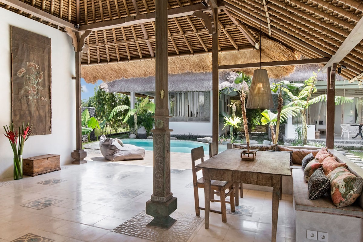Die Villa befindet sich in Penestanan, dem Dorf der Künstlerkolonie von Ubud. Die Villen umgeben von ländlicher natürlicher Umgebung, das Zentrum von Ubud liegt 5 Autominuten entfernt. Die Villas sind eine Mischung aus traditioneller Holzstruktur mit einem üppigen tropischen Garten, der den privaten Pool umgibt. Es gibt eine Klimaanlage, eine voll ausgestattete Küche, einen offenen Wohn-/Essbereich, der direkt auf den privaten Pool führt, Highspeed-Internet 200 Mbit/s. Die Hauptstraße ist 2 Minuten zu Fuß entfernt, 3 Minuten zu Fuß zum berühmtesten veganen Restaurant „Zest Ubud“.