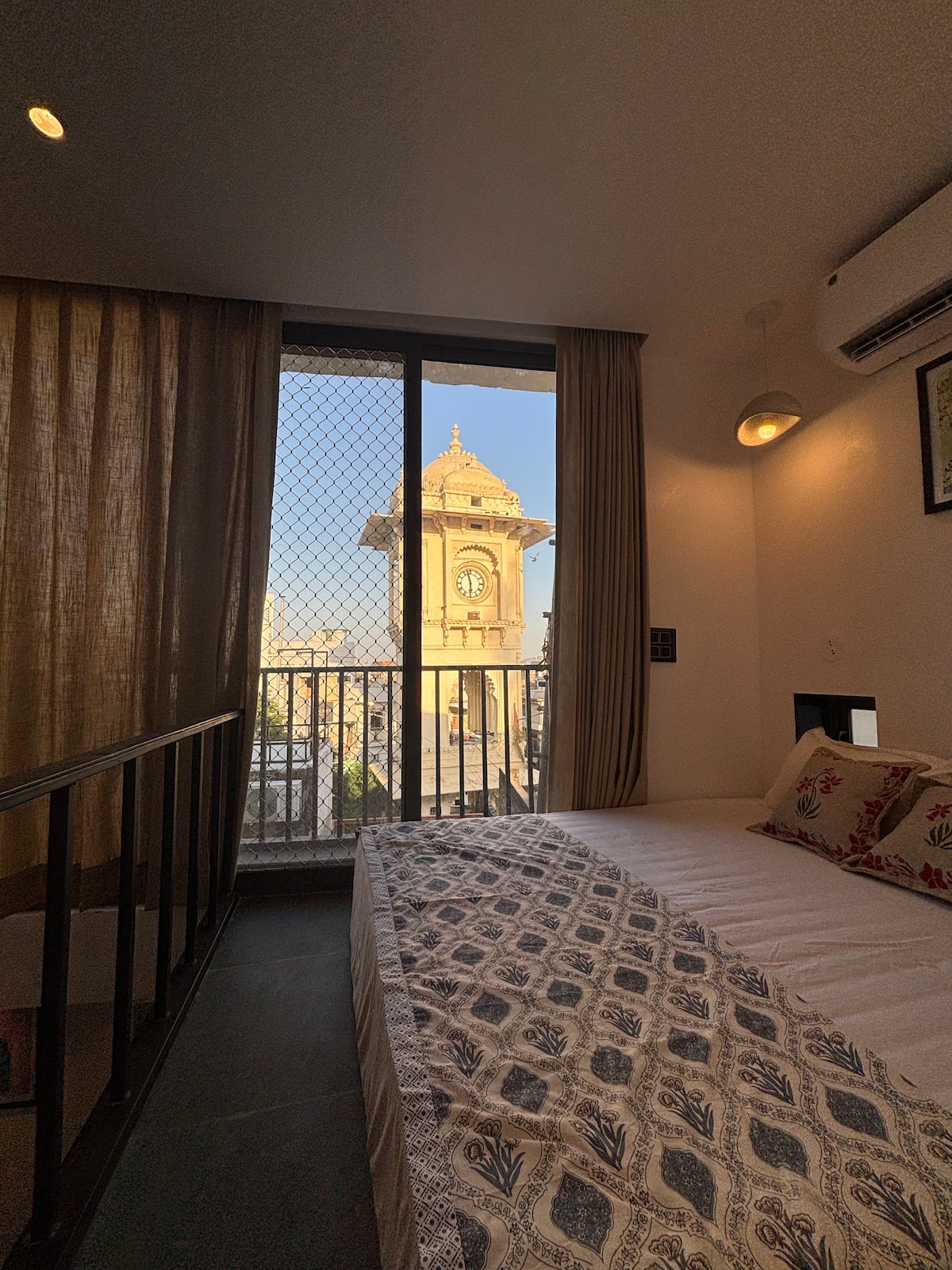 Diese zentral gelegene Unterkunft auf Airbnb bietet einen atemberaubenden Blick auf den Sonnenuntergang und den See direkt von deinem Zimmer aus. Durch die großen Fenster kannst du goldene Sonnenuntergänge genießen, die über dem ruhigen See schimmern. Der gemütliche Raum kombiniert Rajasthani-Dekor mit modernem Komfort und ist damit der perfekte Ort, um sich nach der Erkundung der nahe gelegenen Attraktionen von Udaipur wie dem Stadtpalast und den lokalen Märkten zu entspannen.