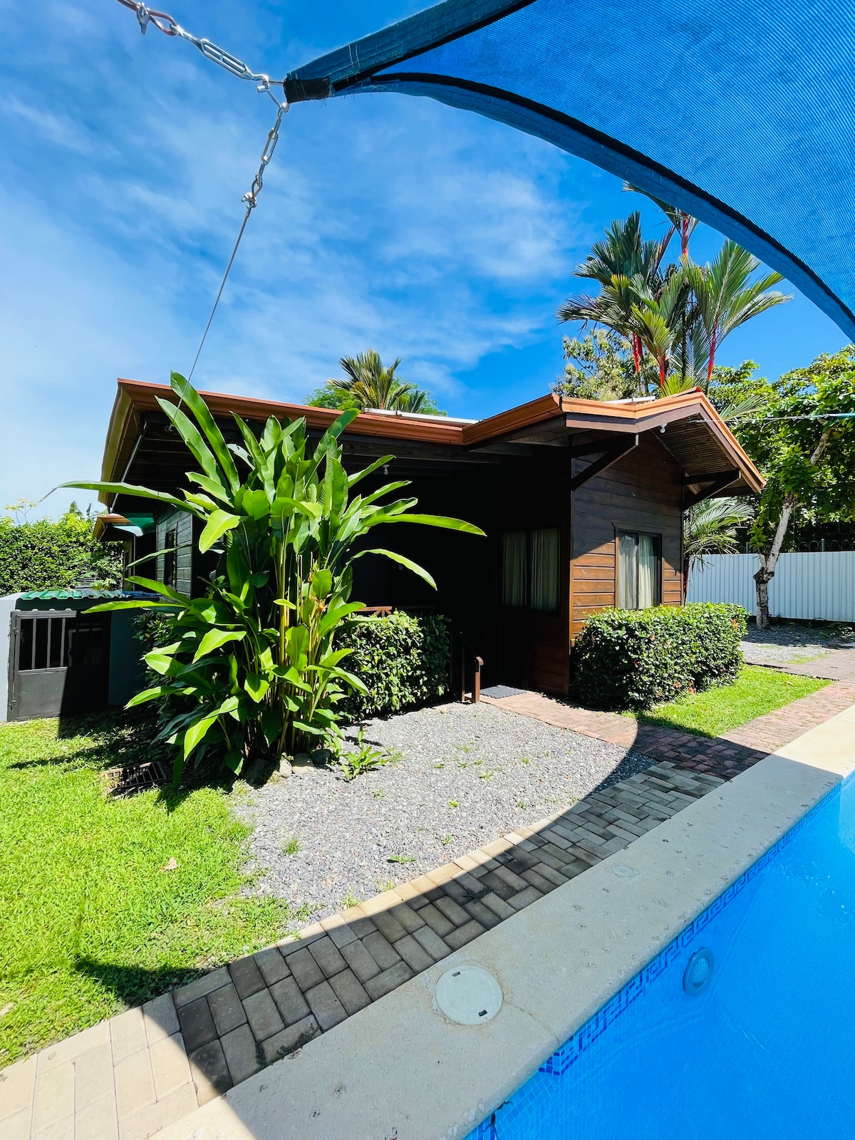 New modern jungle Cabina. Two small but comfortable bedrooms. A queen bed in each. The Cabina has it's own beautiful covered porch, BBQ area, dining area and chair swings as well as lounge chairs. Enjoy the day by the shared pool and covered deck area. Visit our horses, and chickens. Walk our trails, pick fruit, enjoy the Tucans flying by and the Howler monkeys swinging in the trees. Uvita town is only 10 minute walk or 20 minute walk to the famous Whales tail.
