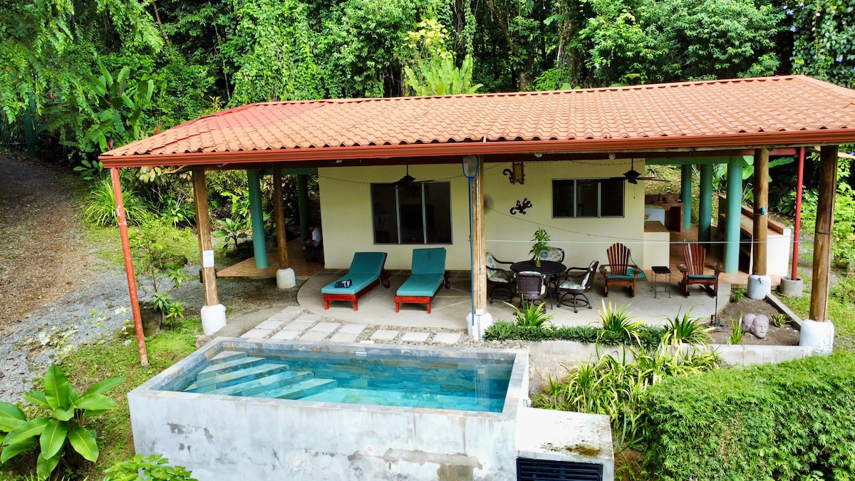 Entfliehe in die Los Árboles Cabana & Pool Retreat, ein authentisches costa-ricanisches Juwel in Dominical. Das Poolhaus liegt inmitten von üppigen Gärten und Dschungel auf einem ehemaligen Wiederaufforstungsgelände mit 60.000 einheimischen Bäumen. Es bietet Sonnenaufgänge über den Bergen, tägliche Brüllaffen-Serenaden und einen privaten Pool, um sich nach Wasserfällen oder Meeresabenteuern zu erfrischen. Zwei Schlafzimmer, eineinhalb Bäder mit Außendusche und eine voll ausgestattete Küche. Beende deinen Tag mit atemberaubenden Sonnenuntergängen und lokaler Gastfreundschaft – wahre Pura Vida!