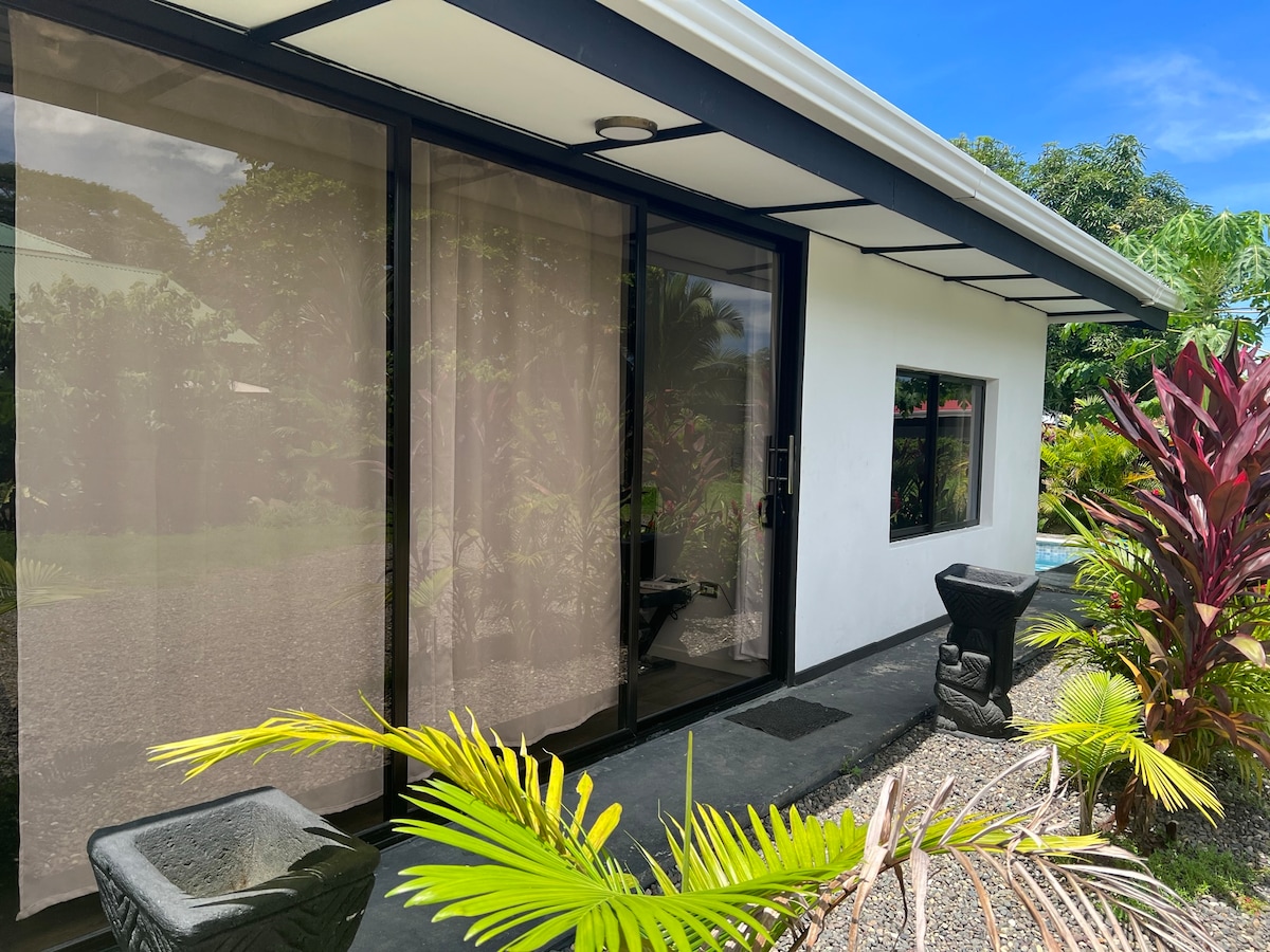 Birds of Paradise houses are a peaceful, family-friendly, modern, fully equipped, surrounded by nature, on a secure and private property. We offer a shared pool, natural gardens, WiFi, parking space for 2 cars maximum, and more than 60 amenities. There are delicious restaurants, shops, supermarkets, drugstores, car rentals, bike and surf board rentals, banks, tourist attractions, and a lot more, all in a walking distance.