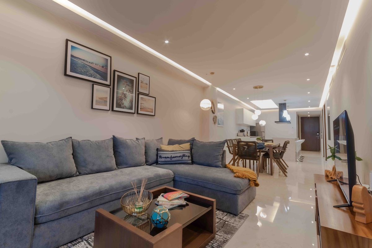 Book with HostPal this incredible and modern accommodation; we are experienced hosts, our goal is to make your stay unique and unbeatable. *Apartment located in Aria Residence, with ocean view and private beach. *Surveillance and heated swimming pools. *Capacity for 6 people. *Ideal for a carefree vacation, deep rest and absolute relaxation. *Equipped with Internet and parking, so it's easy to stay connected and explore the area.