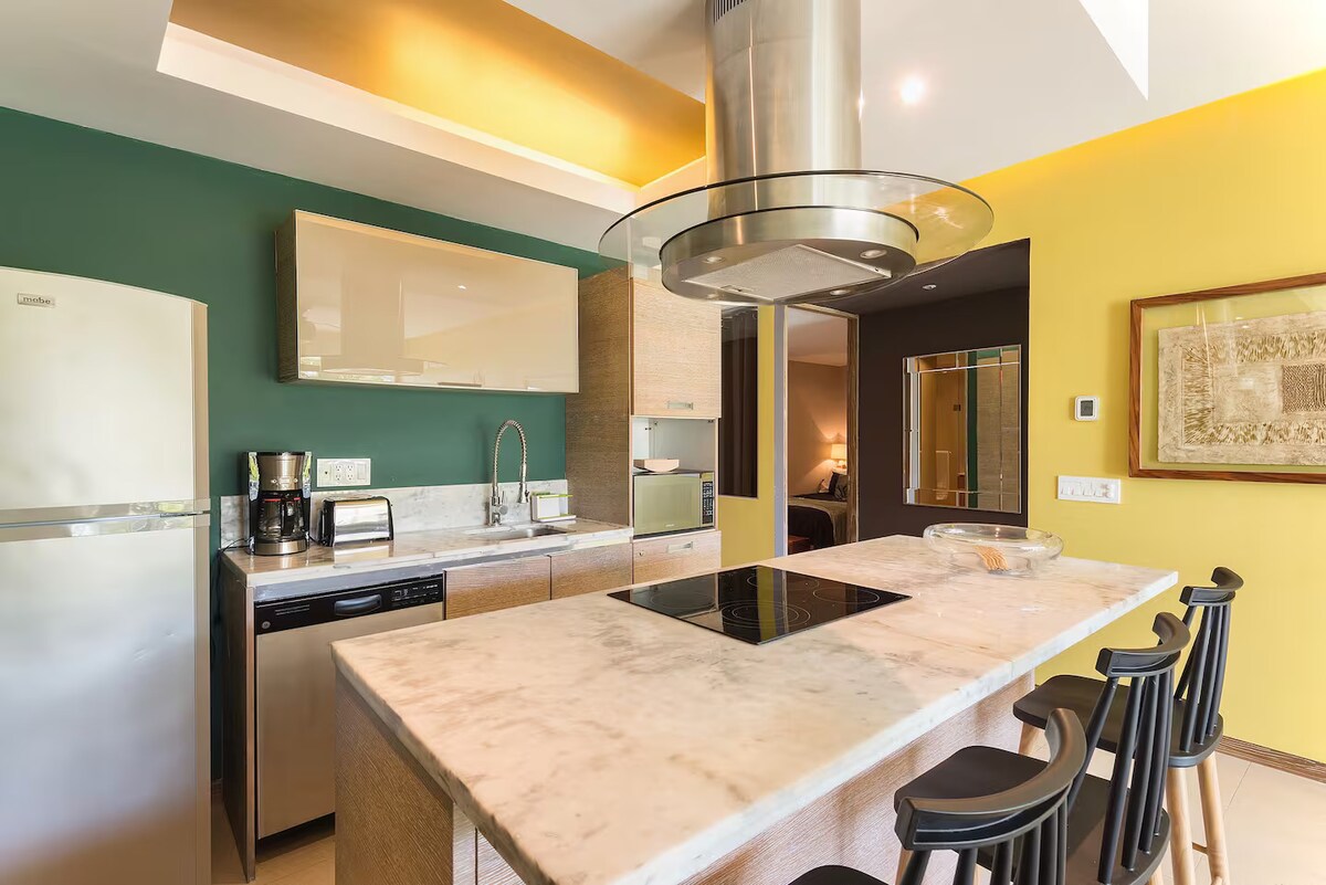 You will be staying in a beautiful 5 bedroom apartment in Bolongo, a new modern condominium development which blends style and nature perfectly. Located in one of the most beautiful places in Vallarta, just minutes away from Punta de Mita. Our complex offers the most desirable amenities: state of the art gym, home theater, game room, spa, bar, specialty restaurant, multiple private beach clubs and 6 pools. We also have excellent security making you stay not only enjoyable, but safe as well.