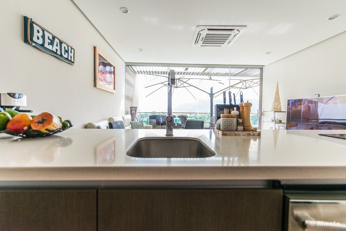 1 Hauptschlafzimmer mit Kingsize-Bett, Schreibtisch, begehbarem Kleiderschrank, Badezimmer und Außendusche 1 Gästezimmer mit 2 Queensize-Betten, 1 Etagenbett, Schreibtisch, private Terrasse Swimmingpool Täglicher Reinigungsservice (gegen Gebühr) Großes Wohnzimmer mit versenkbaren Glastüren für das Open-Air-Erlebnis Privater Sonnendeck Klimaanlage in allen Zimmern essbereich im Freien Voll ausgestattete Küche B.B.Q (Gas) 1 Außendusche 65-Zoll 4K-Flachbild-Smart-TV 1 Tresorfach Innenparkplatz