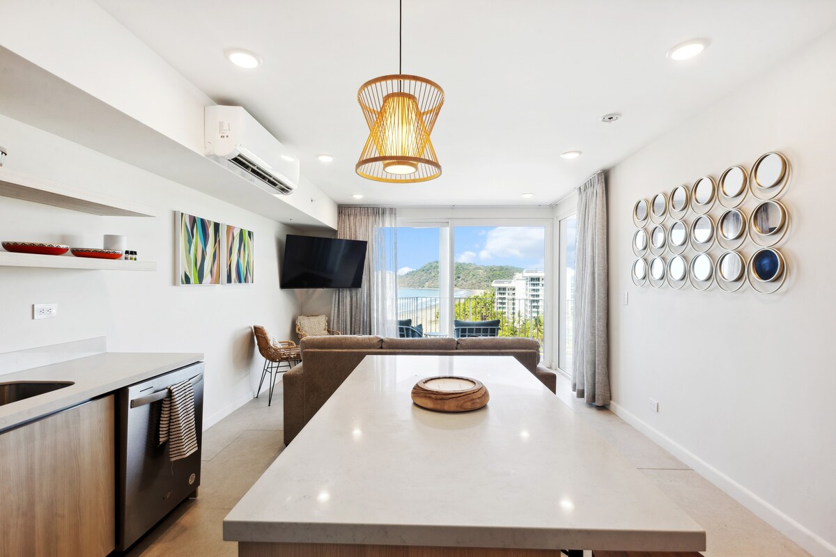 Diese helle, geräumige Erdgeschosswohnung liegt direkt über der Herradura Bay, nur eine kurze Autofahrt vom Eingang zum Los Sueños Resort entfernt. Im Erdgeschoss zu sein, macht alles einfacher, besonders wenn man mit Kindern reist oder Gepäck trägt. Beginnen Sie Ihren Tag mit Kaffee auf der Terrasse mit Blick auf das Meer und den Dschungel. Verbringe den Nachmittag an einem der drei Gemeinschaftspools, erkunde die Restaurants und Geschäfte in der Los Sueños Marina oder genieße ein privates Abendessen mit einem Küchenchef in der Wohnung, das von unserem Concierge arrangiert wird.