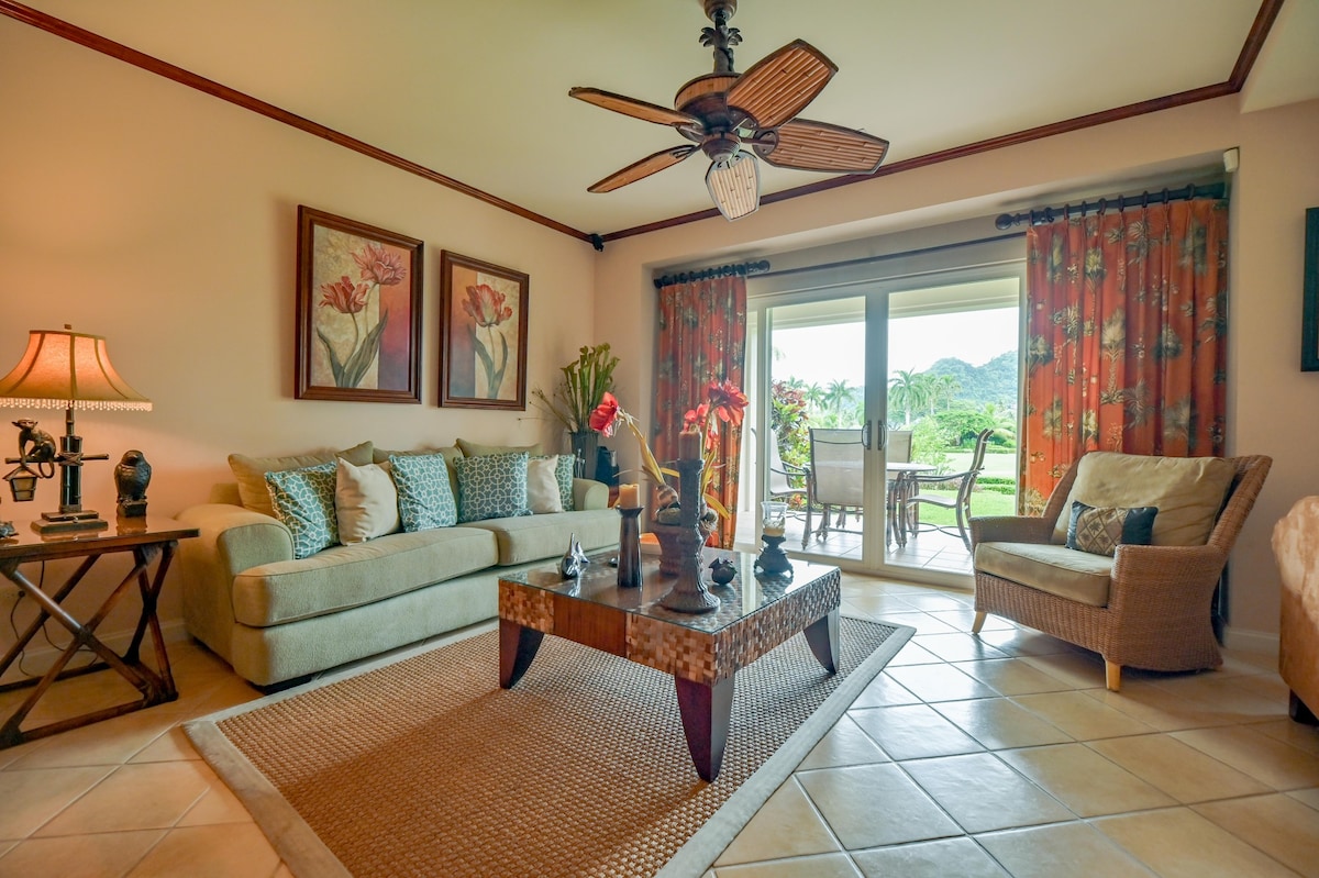 Veranda Paradise ist eine 2-Zimmer-Wohnung mit 2 Badezimmern in Los Sueños, einer der besten Gemeinden in Costa Rica. Du wirst mit spanischer Architektur und einem sehr gemütlich eingerichteten Ort mit handbemaltem Vogelhandwerk in der gesamten Wohnung begrüßt, die allesamt geplant sind, um deinen Urlaub in Gang zu bringen! Du hast 2 Terrassen, einen schönen Gartenblick, eine voll ausgestattete Küche, WLAN und Smart-TVs in allen Zimmern. Es gibt 5 Pools mit Whirlpools zur Auswahl, Grill, einen Fitnessraum mit Klimaanlage, Zugang zum Strandclub, Yachthafen, Golf und mehr.