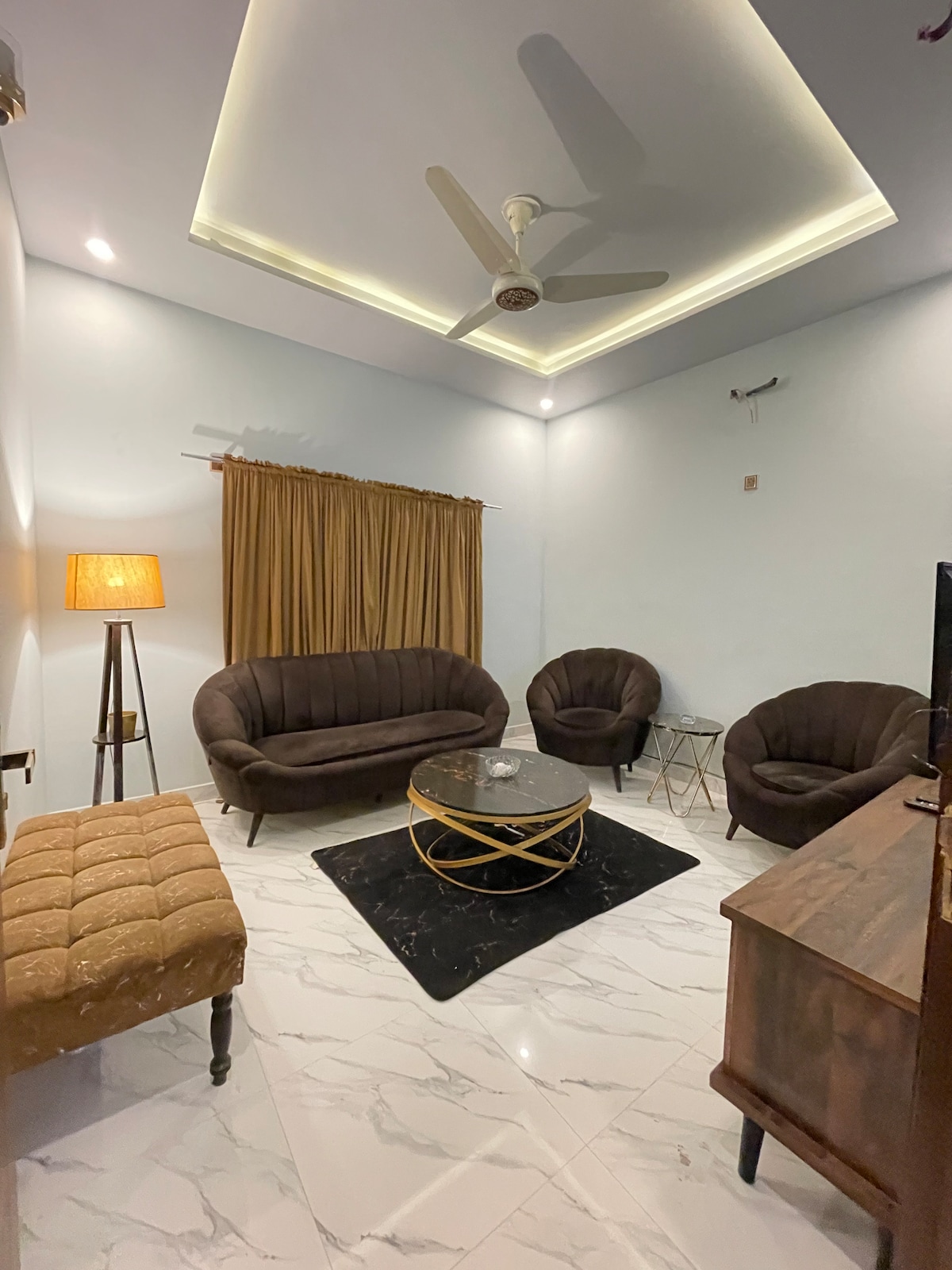 Enjoy this bright, colorful studio in a new building of DHA Phase VI (Small Bukhari) at 2nd floor (without lift). Watch Netflix & YouTube on the smart projector in bed 🎥, or enjoy movies with the LED in the living room 📺. Chill on the velvet sofa 💺, cook in the modern kitchen 🍳, and dine under the arc lamp beside a lovely painting 🎨. Two bathrooms 🚿 mean no waiting. Modern, stylish, and super comfy ✨