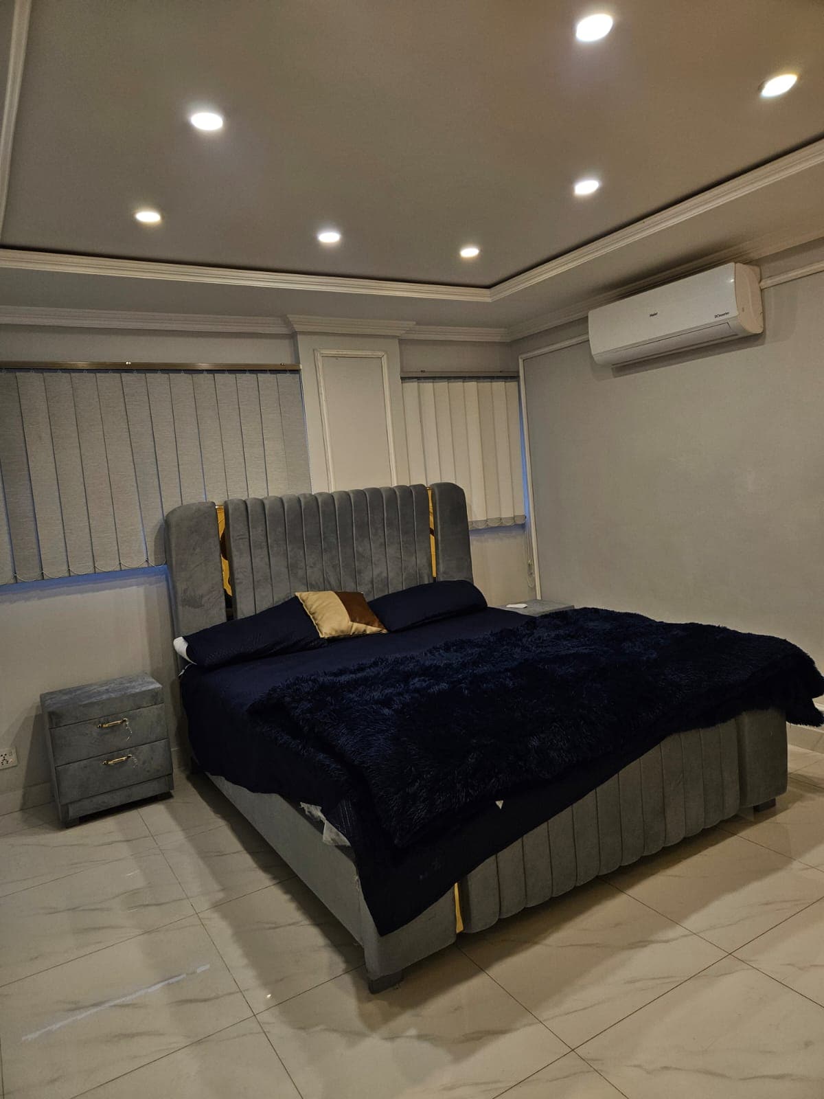 Experience a designer crafted apartment built for comfort and style. Located in a peaceful, secure area, it features a private terrace with beautiful views, a plush bed, 55 inch TV with Netflix and elegant lighting. The fully equipped kitchen includes a German stove, big fridge to store your snacks , kettle and LG washer. A unique monarch modern theme, mural wallpaper and premium décor create a perfect space to relax and enjoy your stay
