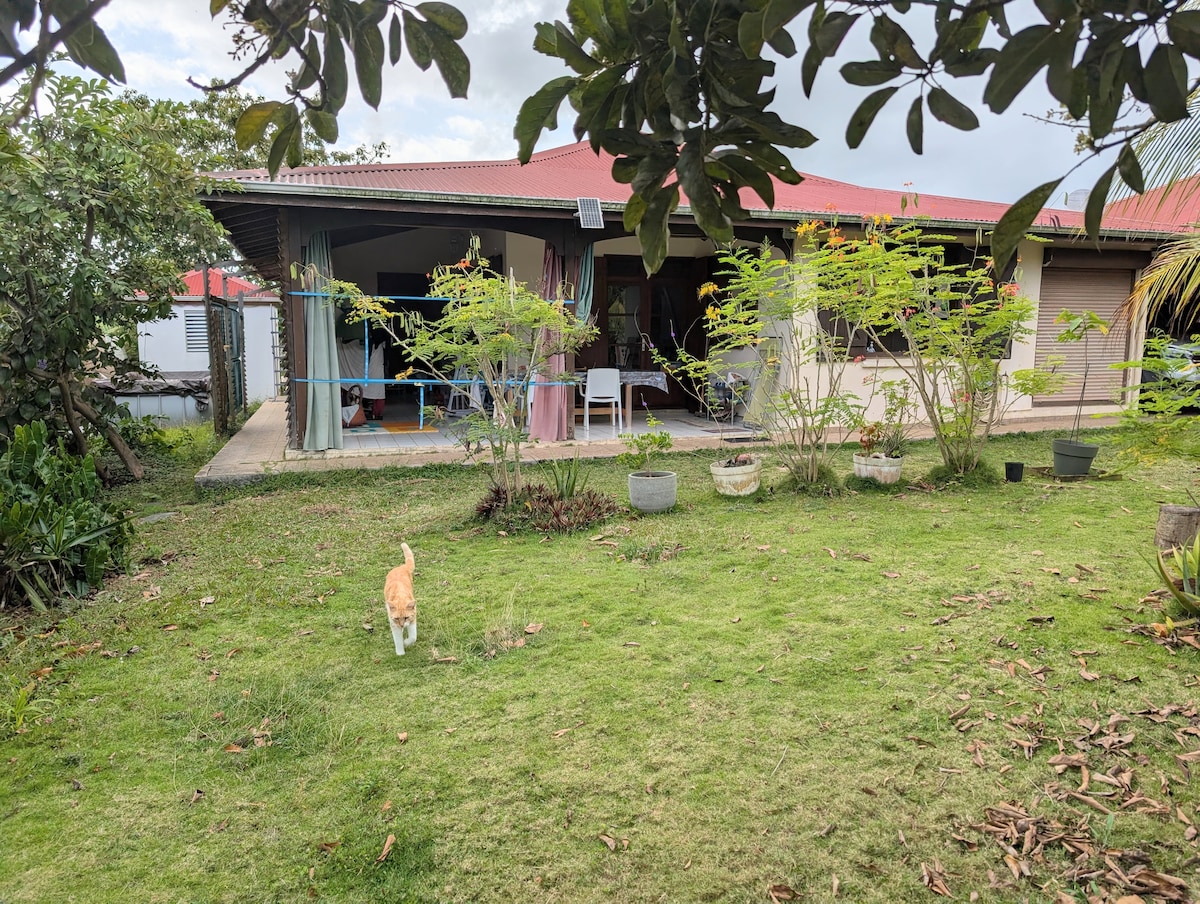 Situé dans un lotissement au nom évocateur "Ti Savann", je propose un beau appartement indépendant de ma maison, équipé et aménagé agréablement, avec accès sur la terrasse et le jardin. A proximité : station de bus, supermarché, vélodrome, aéroport (15 min en voiture)