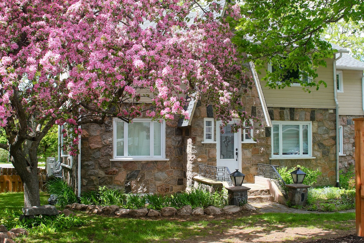 Les magasins et les restaurants populaires sont tout près de ce logement enchanteur. Située près de la ville de Québec et à l'entrée de Charlevoix, entre le Fleuve St-Laurent et le Mont-Ste-Anne. Chambre champêtre avec 1 lit queen, foyer, wi-fi et stationnement gratuit, réfrigérateur, cafetière , coin repas, salle de bain privée, etc...