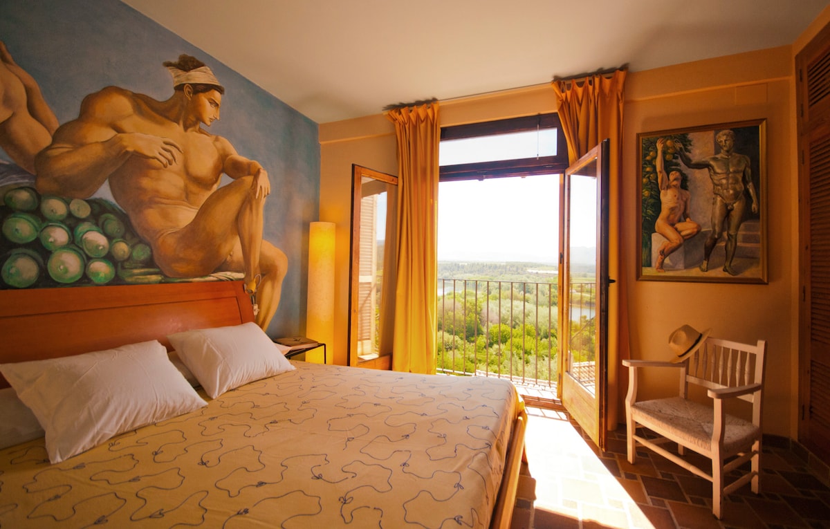 Imagine waking up with a view of the rising sun in front of the Ebro River and at the foot of Miravet Castle. In a historic enclave where serenity reigns. We are Aurelio and Joaquim, and we invite you to enjoy a cozy exclusive apartment, with a lovely room, private bathroom, kitchenette, terrace and garden. Wake up with the birds, relax reading under the trees next to the ecological pool. Enjoy the landscape, an invitation to contemplation, the practice of chi kung, yoga or meditation.