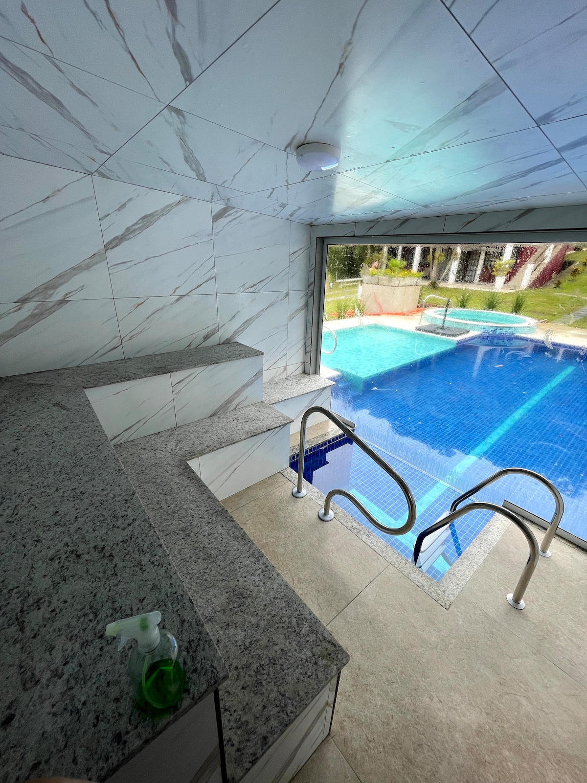 Ein entzückendes Landhaus, um dem Stress der Stadt zu entfliehen. Das verfügbare Haus ist das kleinste, aber völlig unabhängig, und es umfasst auch ein privates Kino mit einer 180-Grad-Leinwand und Sesseln mit automatischer Rückenlehne. Der Gast hat das Recht auf alle externen Einrichtungen wie: Garten, Obstgarten, Hängematten, Pool, Gourmet-Bereich, Spielzimmer, alles exklusiv. Wenn wir Gäste haben, ist niemand im anderen Haus. Hinweis: Der Whirlpool und die Sauna sind nicht Teil dieser Anzeige.