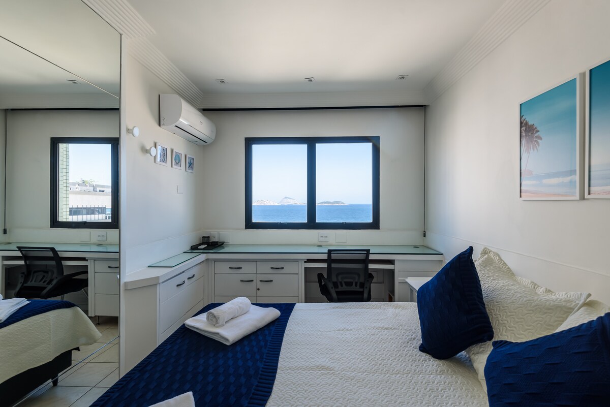 Modern & Safe Apartment in the Heart of Ipanema! Enjoy breathtaking ocean views from the balcony and bedroom in this stylish flat, up to 2 guests. Features a comfortable queen bed, sofa bed, 2 split air conditioners, smart TV, high-speed Wi-Fi, Nespresso machine, hair dryer, and a fully equipped kitchen. Located steps from Ipanema Beach, this secure and modern building offers swimming pool, sauna, gym, parking and 24h doorman service, ensuring comfort and peace of mind throughout your stay.