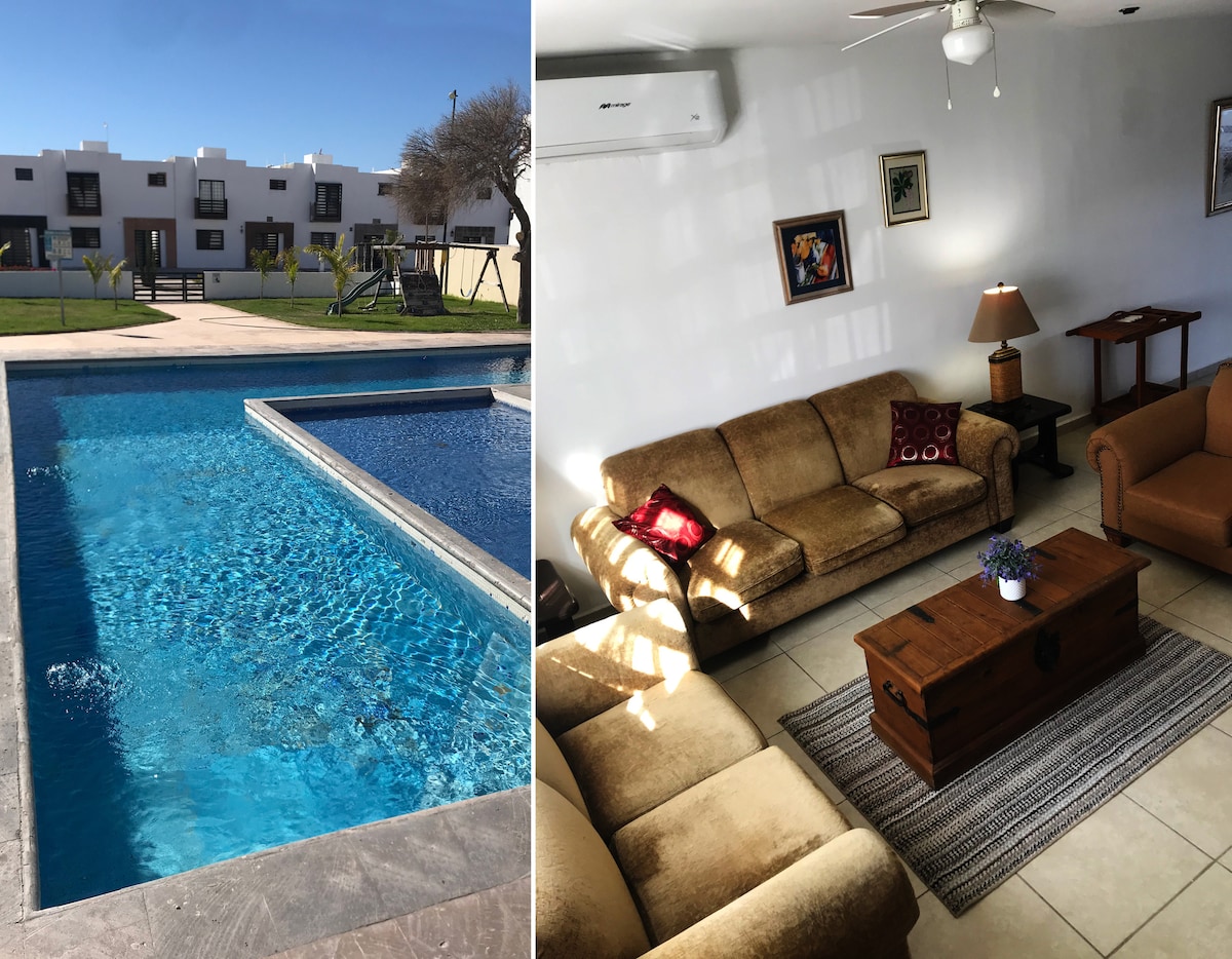 Casa Julieta befindet sich in der ersten Reihe in der La Jolla Residence Community mit einem einfachen/sicheren 1-Block-Zugang zum Strand Costa Azul und nahegelegenen Restaurants. Das voll ausgestattete, schlüsselfertige Stadthaus hat viel zu bieten für deinen Urlaub. 75-Zoll-Super-HD-Sony-Bravia-Fernseher mit Bluetooth SonyXP500. Auf der 3. Ebene von 4, unwirkliche Sonnenaufgänge, die dich aus dem Luna Memory Foam Bett wecken. Strand/Sand/Bergblick/Mondaufgang von überall im Haus mit 24/7 gesicherter geschlossener Wohnanlage mit Infinity-Edge-Pool, nur wenige Schritte zum Strand
