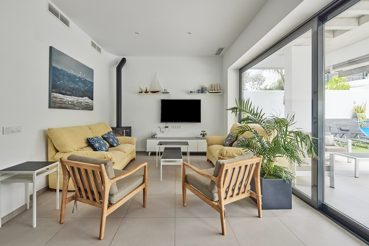La casa, ideal para familias, se encuentra en una zona muy tranquila, a tan solo 3 minutos andando de la playa y rodeada de zonas verdes. El interior ha sido reformado en su totalidad y ha sido amueblado y decorado en un estilo neutro minimalista, logrando sensación de bienestar y confort. La magnífica piscina con la que cuenta está disponible todo el año. El porche es el lugar ideal para tomar el desayuno con la familia o amigos o simplemente relajarte leyendo un libro.