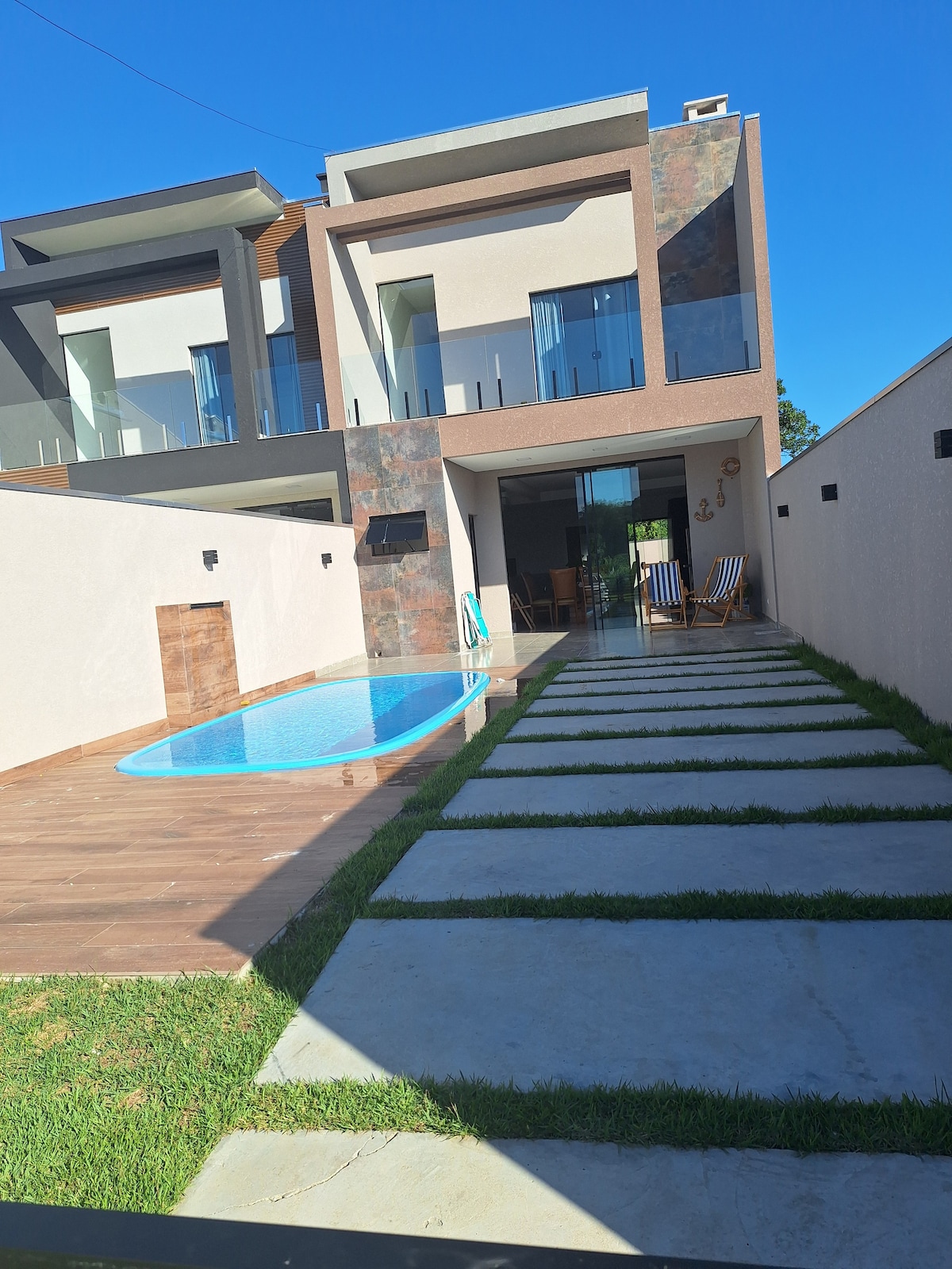 Relaxe com toda a sua família em uma casa nova charmosa e aconchegante. A estrutura é moderna e projetada, piscina com aquecimento solar, área de lazer espaçosa, churrasqueira equipada, quartos com ar-condicionados Daikin acionados via wi-fi, torneiras e chuveiros aquecidos a gás, alarme monitorado 24 horas e câmeras externas. Disponibilizamos carrinho de praia, cadeiras, guarda sol. Desfrute bons momentos. 7 min do embarque para a Ilha do mel.