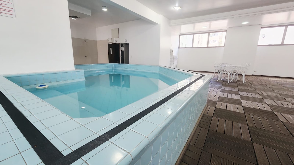 AUSGEZEICHNETE WOHNUNG (24 m ²) für ZWEI Personen. - BOXBETT - ROTIERENDE GARAGE - Maßgeschneiderte geplante Möbel - Bettwäsche und Handtücher sind vorhanden. - Das Gebäude liegt am Wasser (WENIGER ALS 200 m vom Strand entfernt) - Wohnung mit Blick auf Av. Brasil. - Swimmingpool und BEHEIZTER Whirlpool (ärztliches Attest erforderlich// MONTAGS wegen Wartung geschlossen) - Kiosk mit Grill (nach Reservierung mit Kosten)