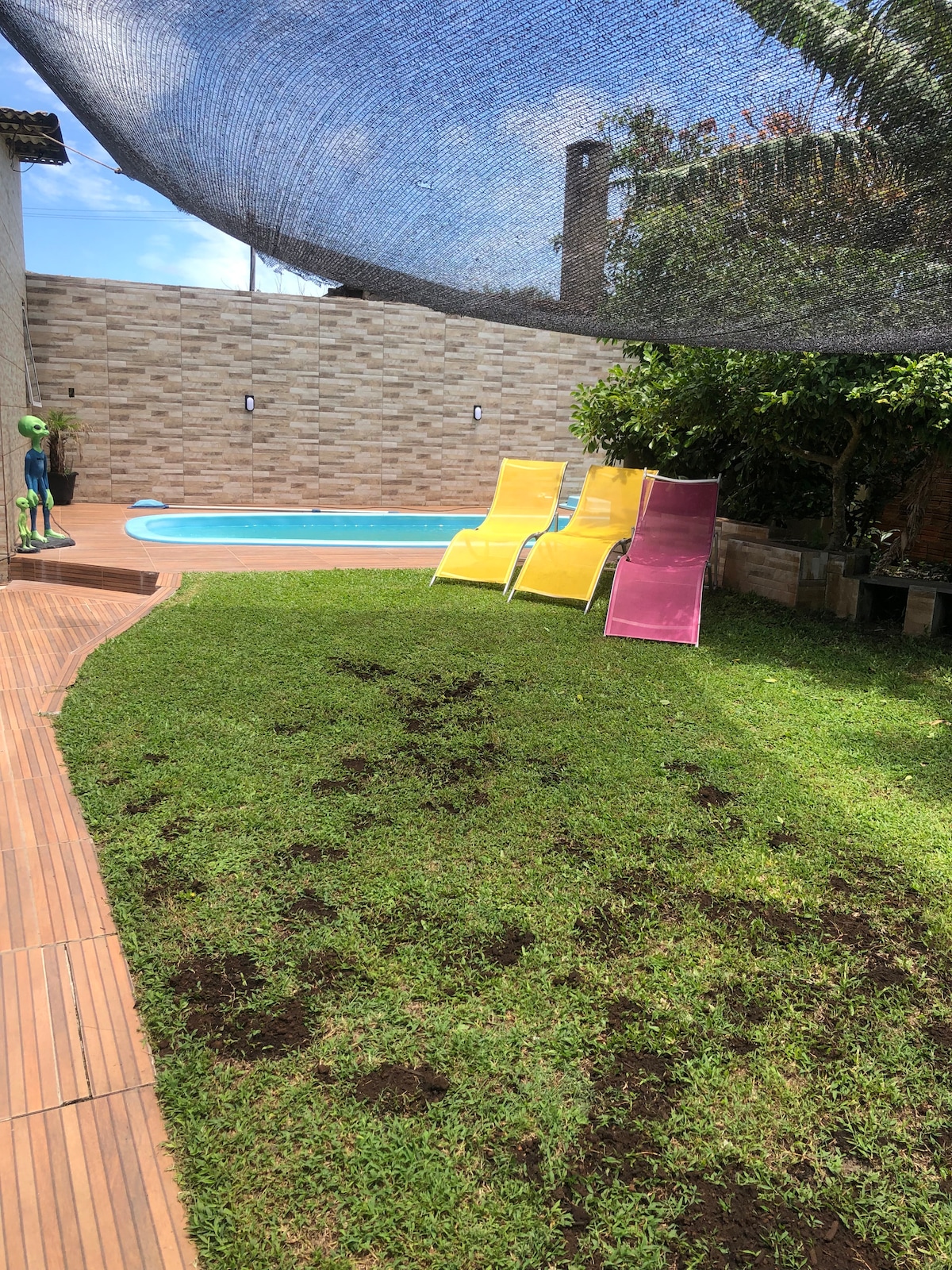 Entspannen Sie sich mit der ganzen Familie in dieser ruhigen Unterkunft. Schönes und gemütliches Haus, 1,5 Blocks vom Strand entfernt. Möbliert, um Komfort und Funktionalität zu bieten. Reichlich Platz zum Parken im Garten mit schönem Rasen, Zaun und Mauer. Mit Alarm- und Überwachungssystem. Genießen Sie Momente der Ruhe und des Spaßes mit Ihrer Familie. Verfügbare Ausstattung: 2 Doppelbetten, 2 Einzelmatratzen, 3 Sofas, Fernseher, Kühlschrank, Herd, Backofen, Ventilator, Mikrowelle, Kaffeemaschine, Toaster, Strandkorb